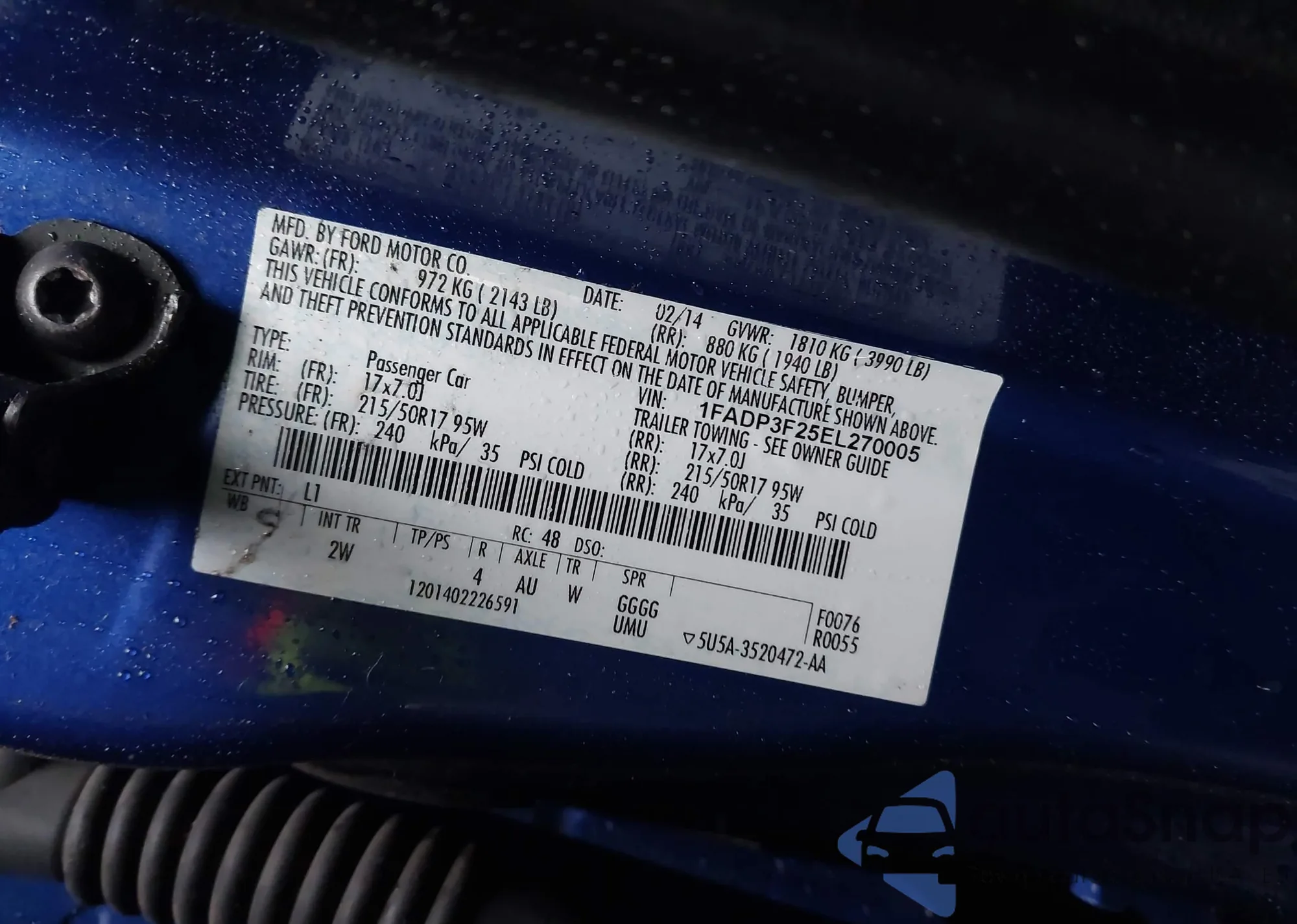 VIN: 1FADP3F25EL270005