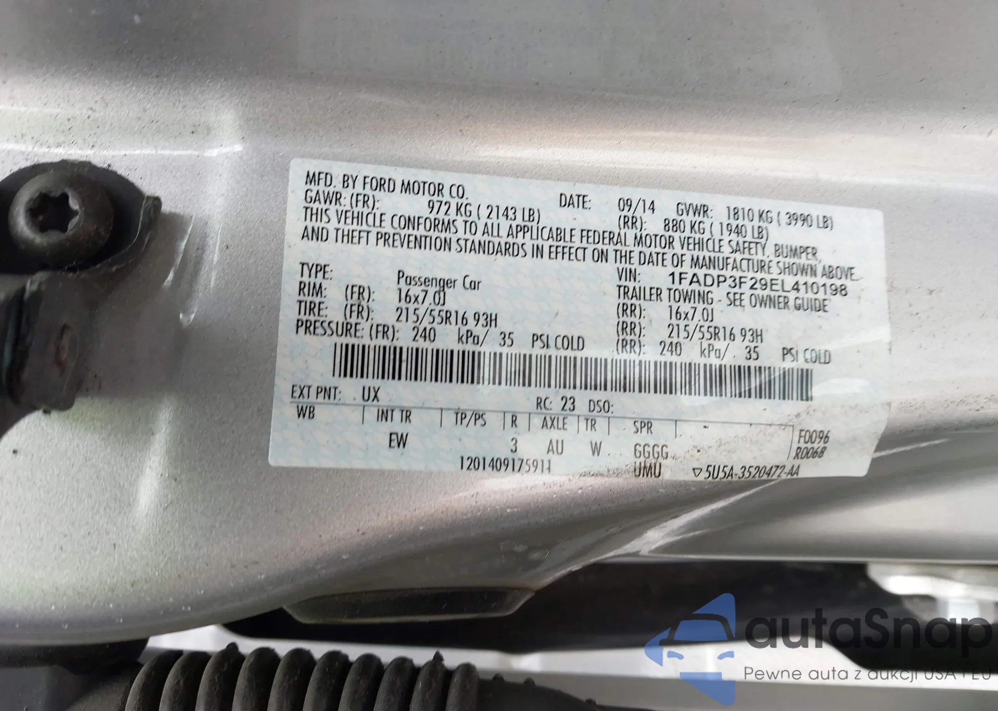 VIN: 1FADP3F29EL410198