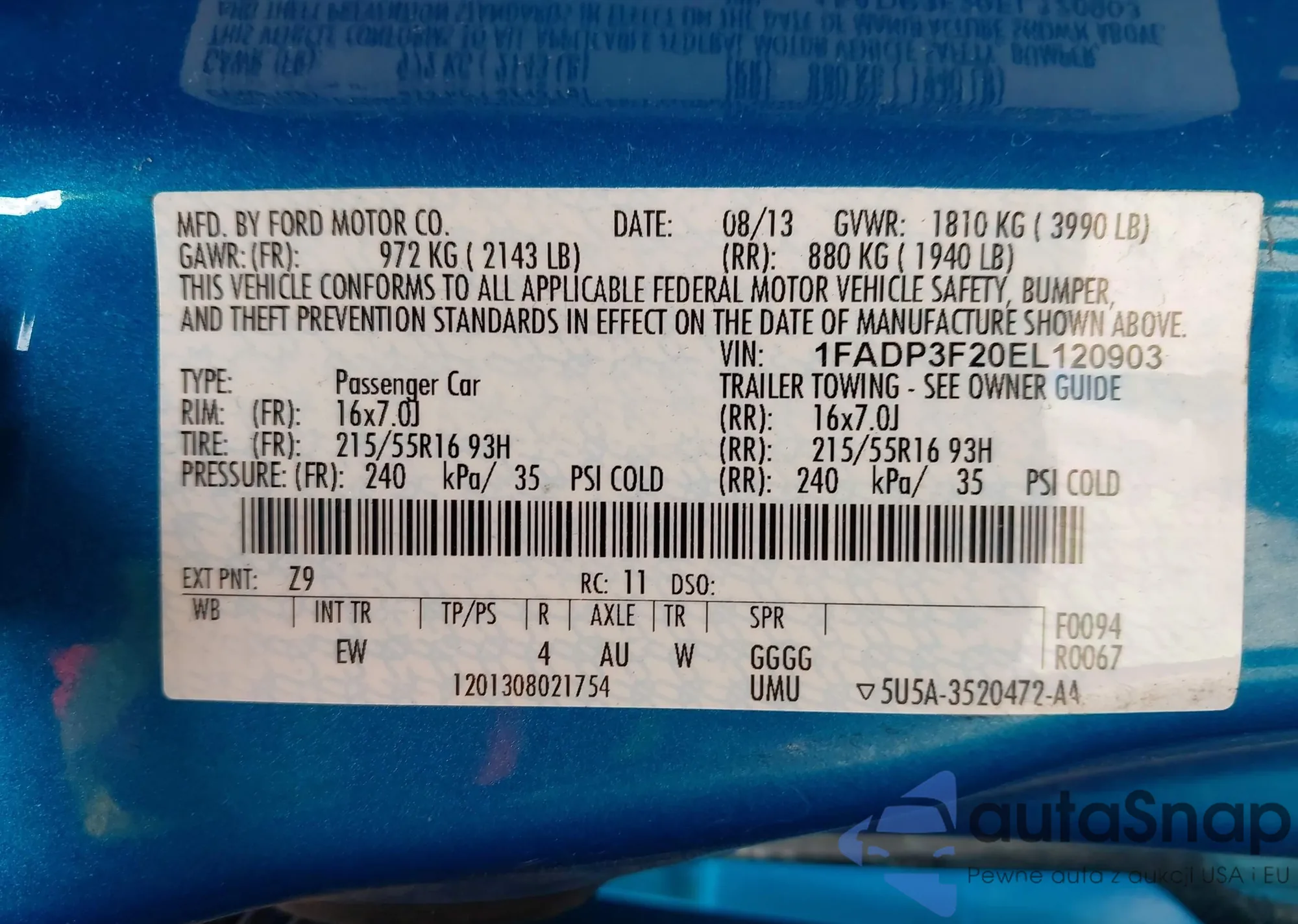 VIN: 1FADP3F20EL120903