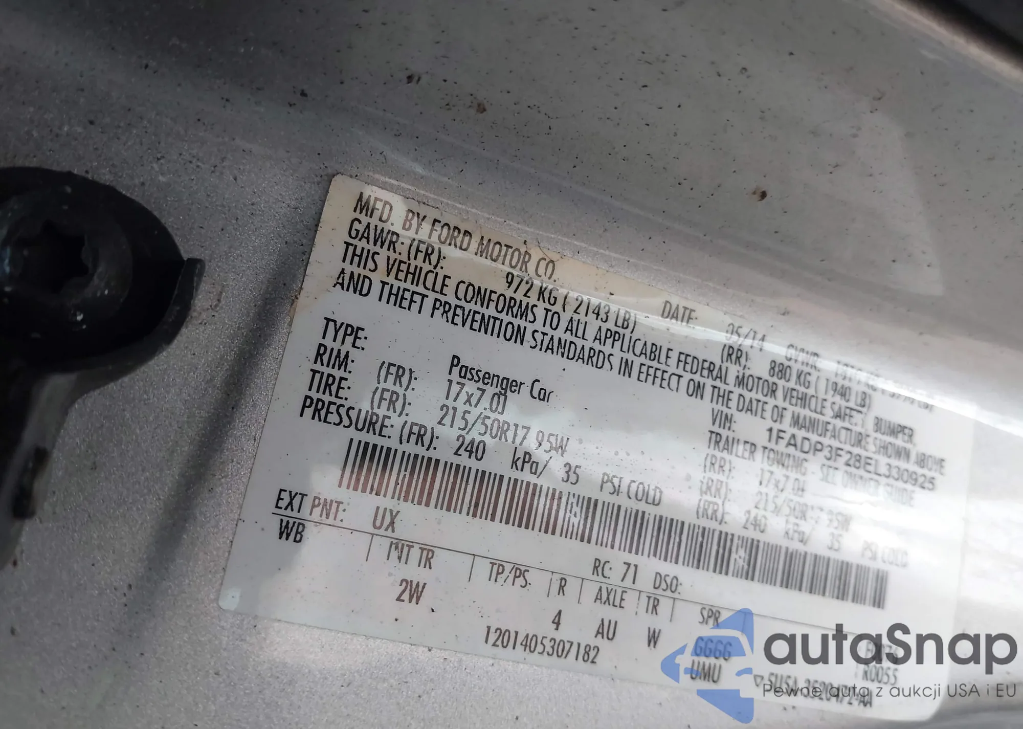 VIN: 1FADP3F28EL330925
