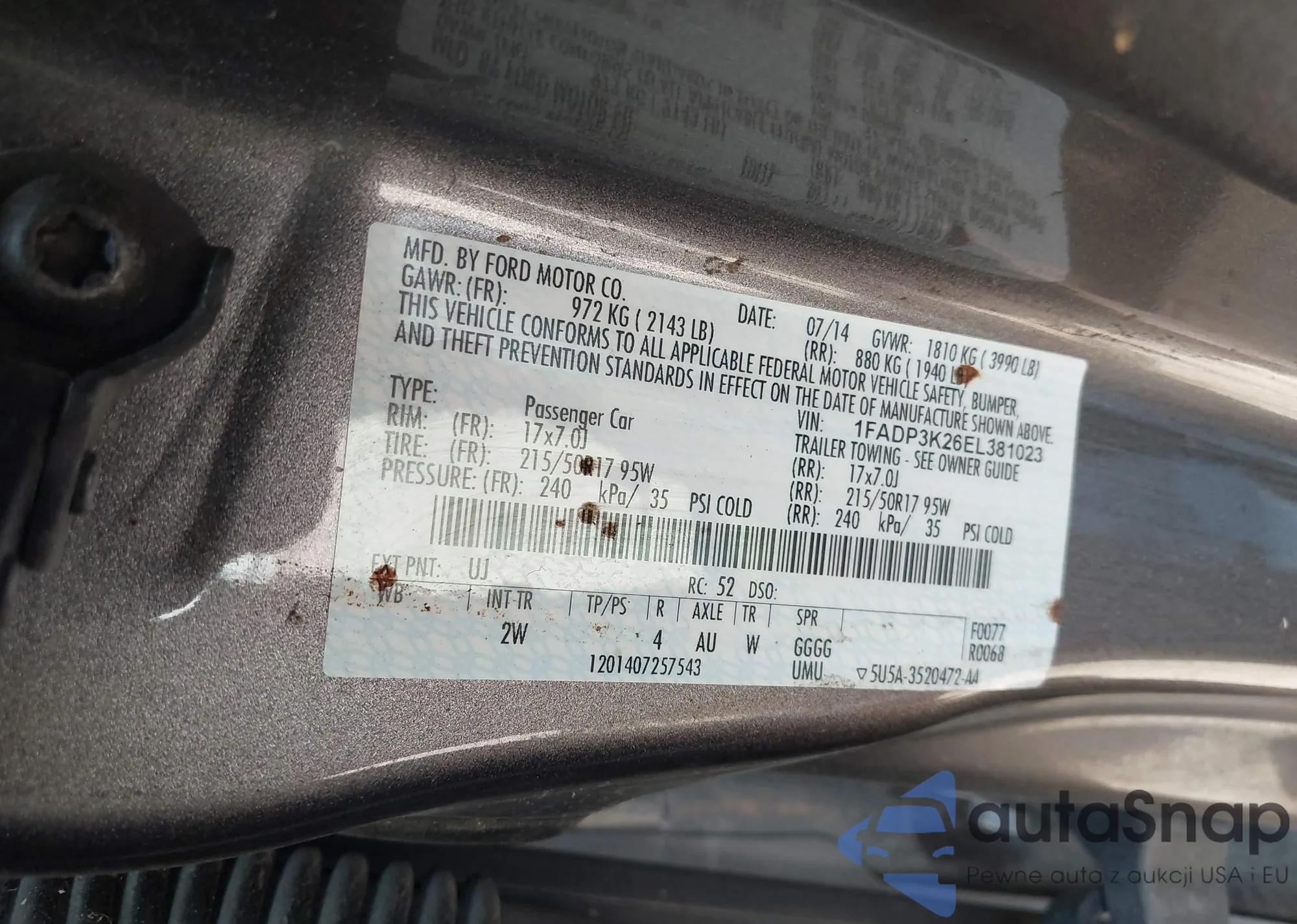 VIN: 1FADP3K26EL381023