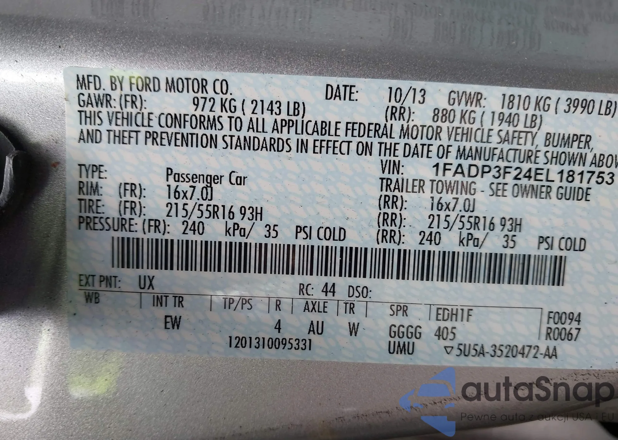 VIN: 1FADP3F24EL181753
