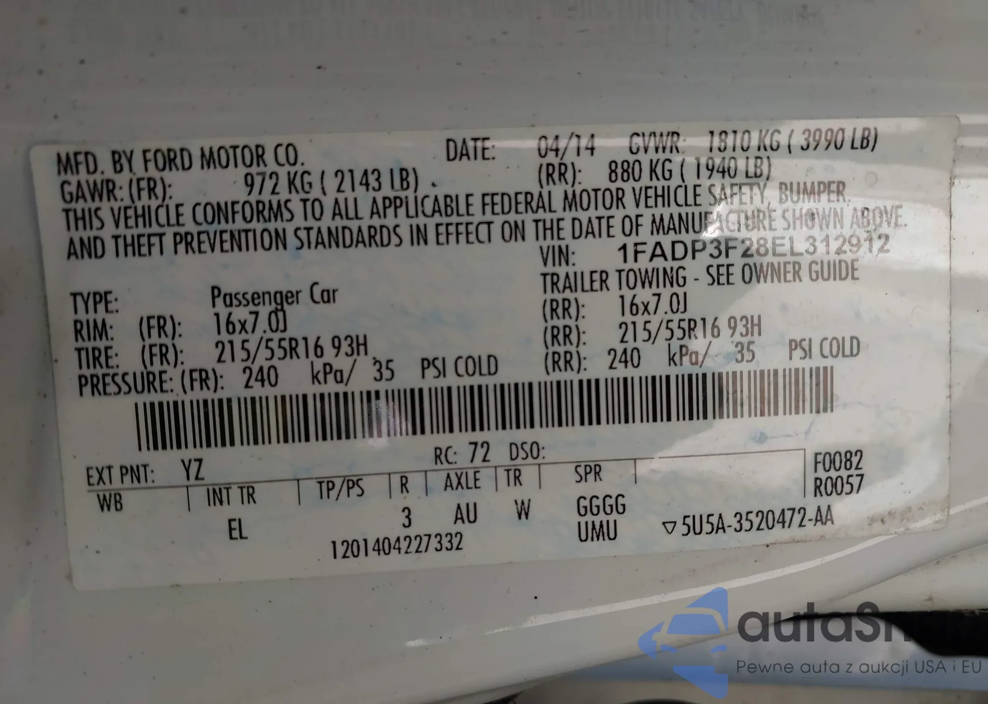 VIN: 1FADP3F28EL312912