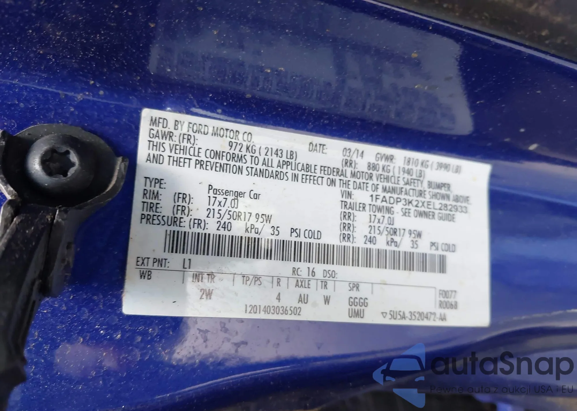 VIN: 1FADP3K2XEL282933