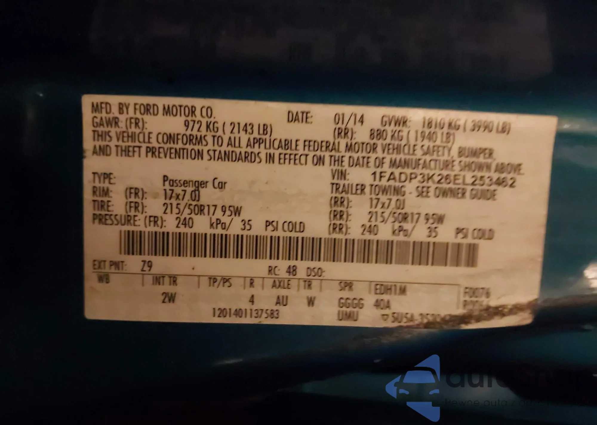 VIN: 1FADP3K26EL253462