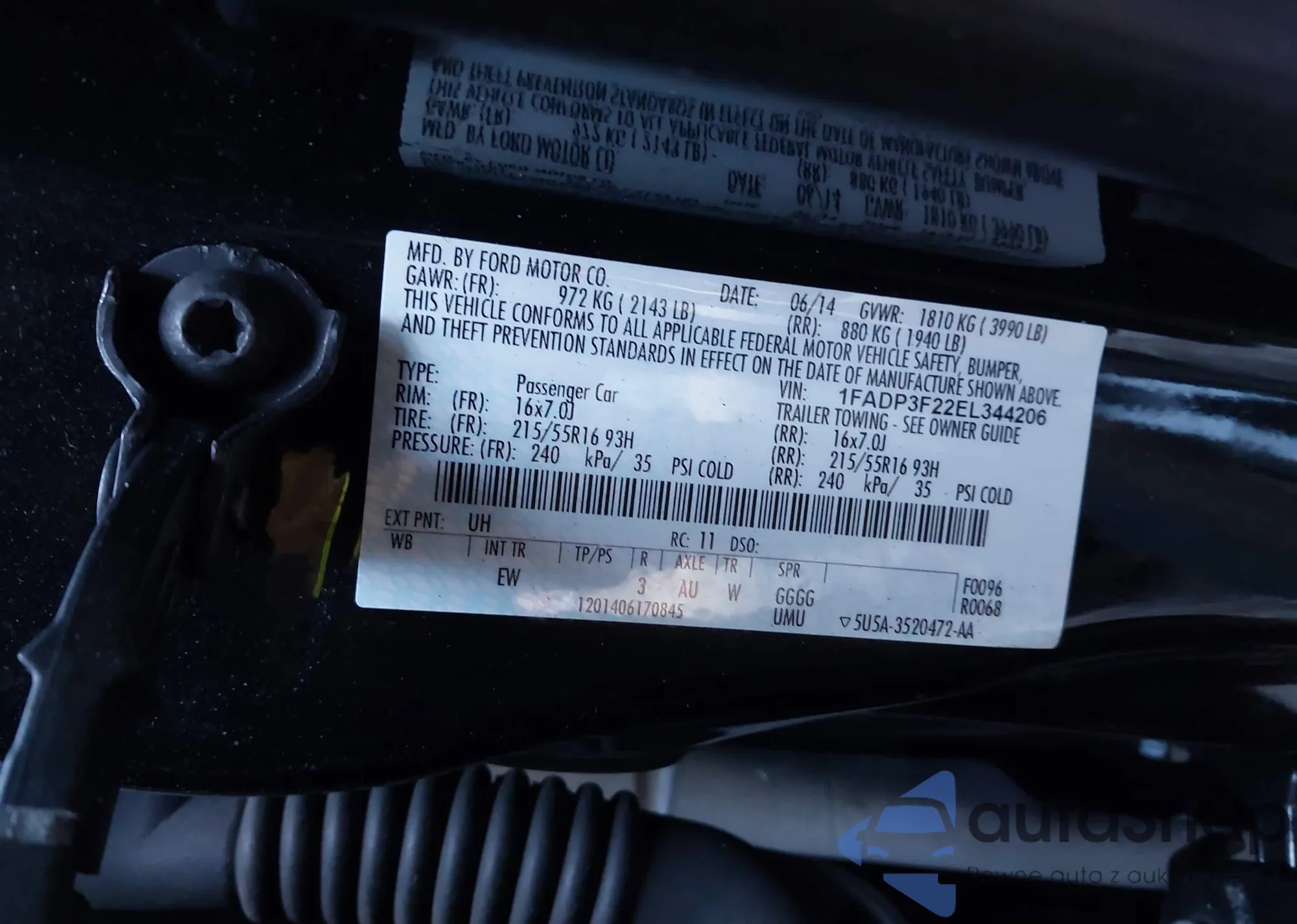 VIN: 1FADP3F22EL344206