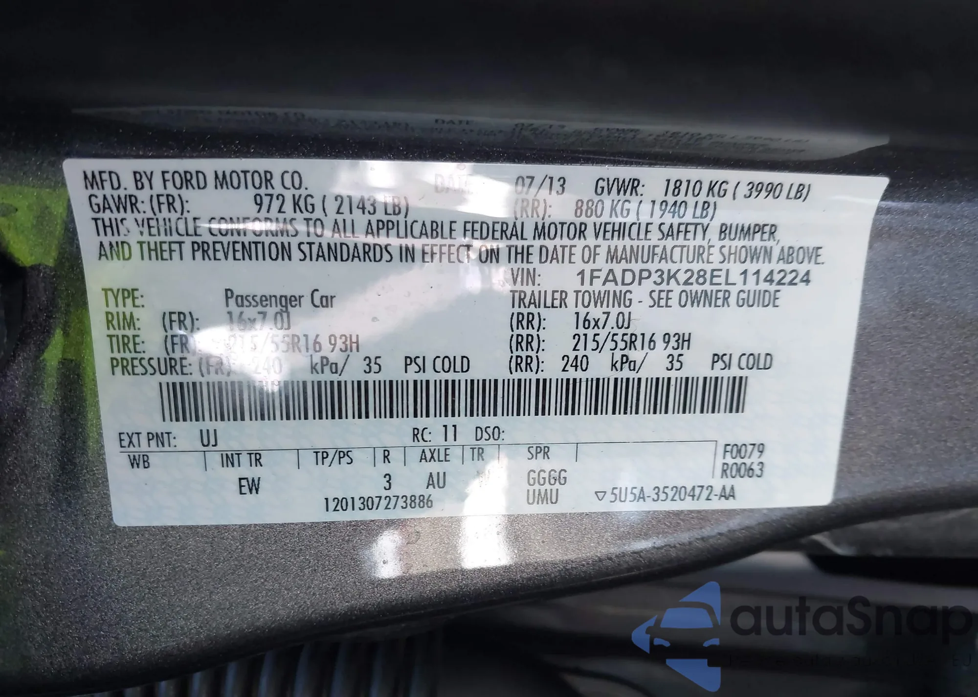 VIN: 1FADP3K28EL114224