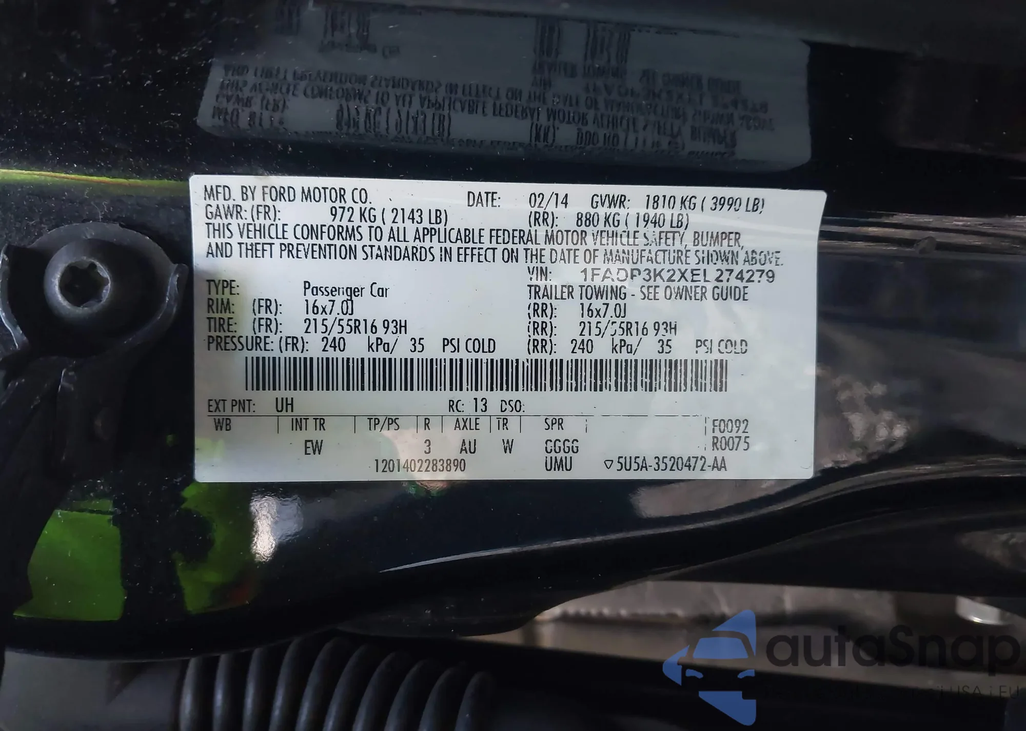 VIN: 1FADP3K2XEL274279