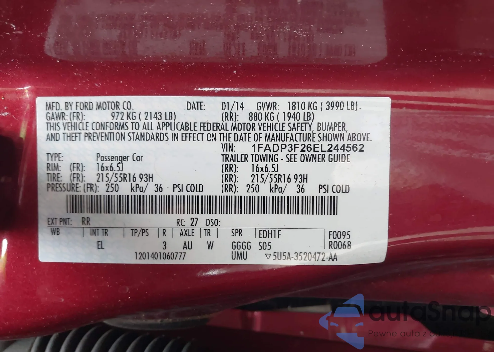 The car Ford Focus 2014 (VIN 1FADP3F26EL244562) has not been auctioned before. The documents are clean, and the mileage matches or is below the market average. Sold by an insurance company – we recommend purchase. Delivery to the port will take approx. 6–8 weeks.