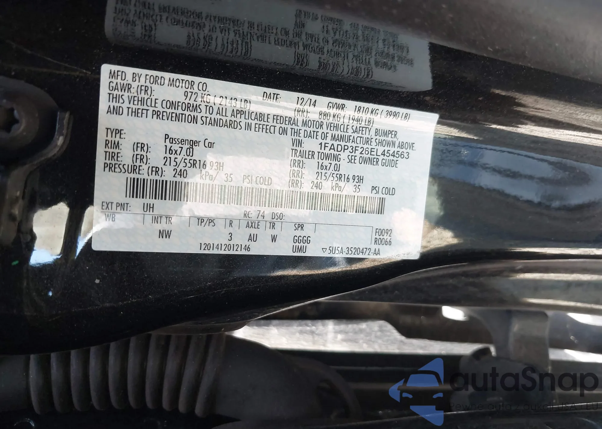 VIN: 1FADP3F26EL454563