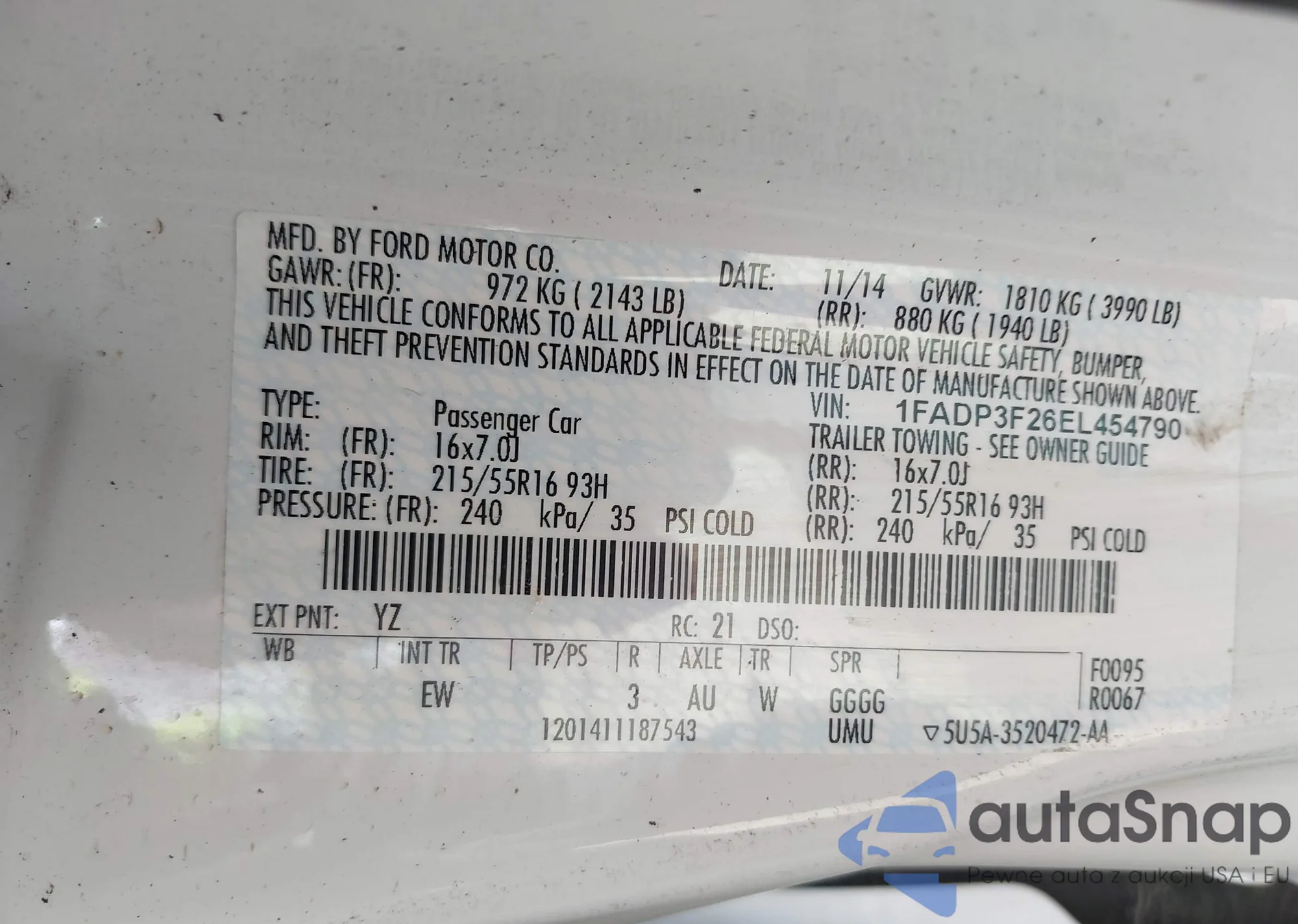 VIN: 1FADP3F26EL454790