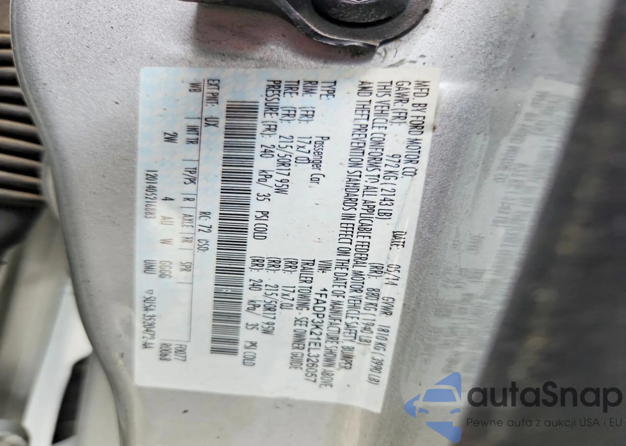 VIN: 1FADP3K21EL326057