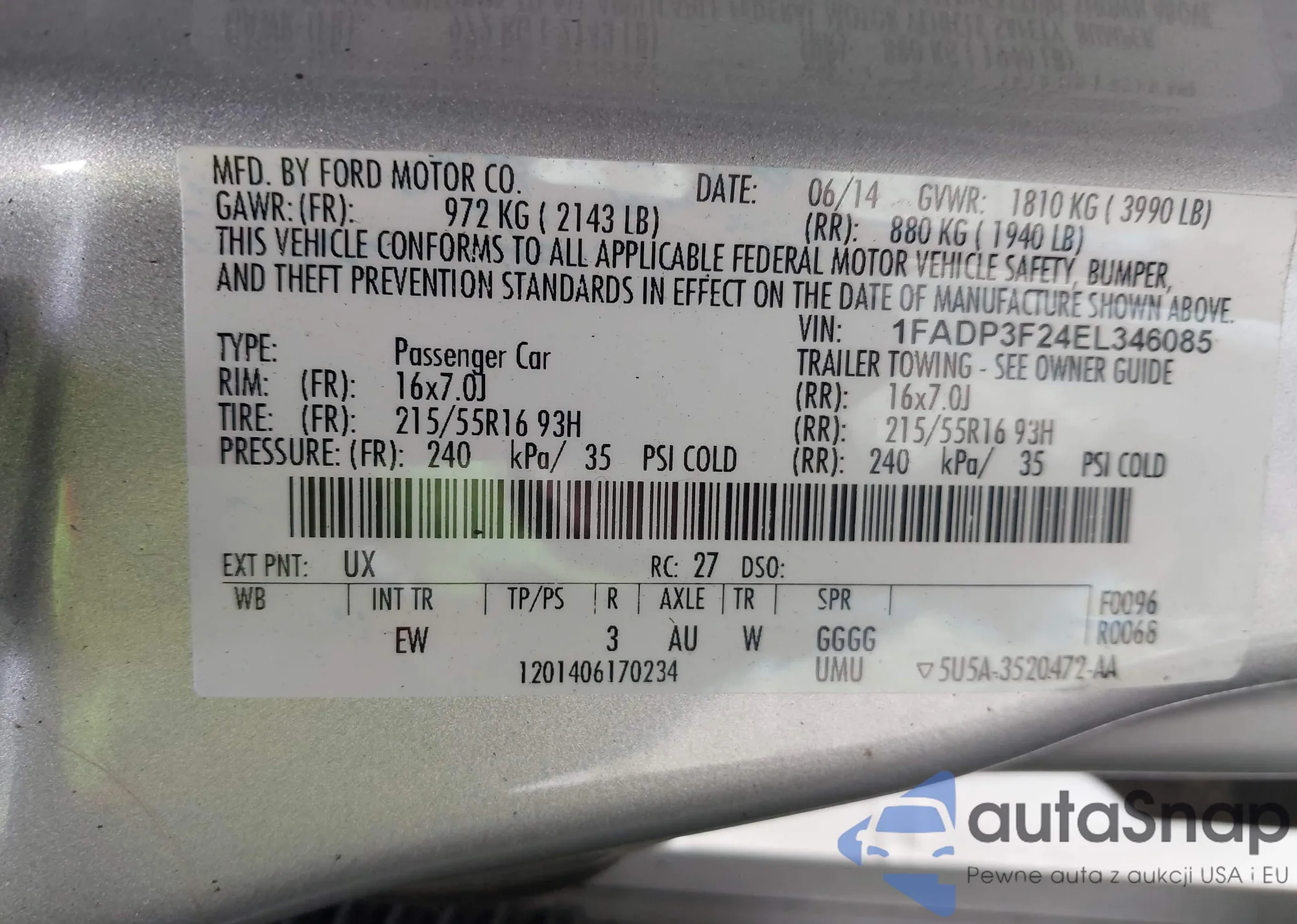 VIN: 1FADP3F24EL346085