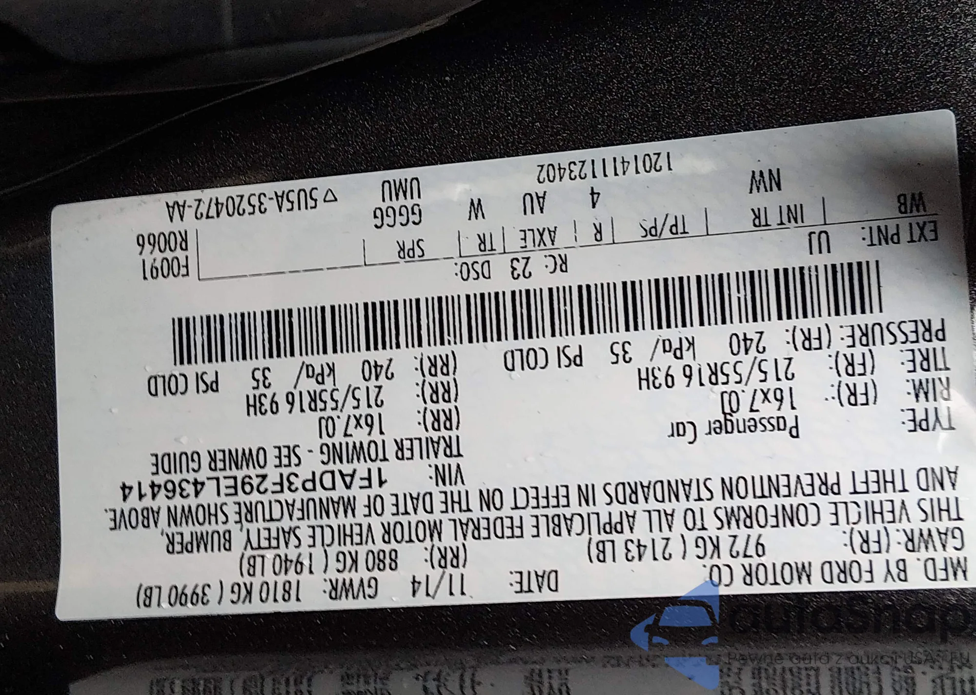The car Ford Focus 2014 (VIN 1FADP3F29EL436414) has not been auctioned before. The documents are clean, and the mileage matches or is below the market average. Sold by an insurance company – we recommend purchase. Delivery to the port will take approx. 6–8 weeks.