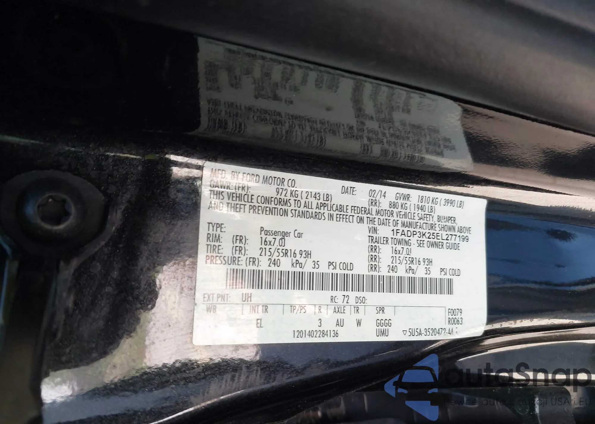 VIN: 1FADP3K25EL277199