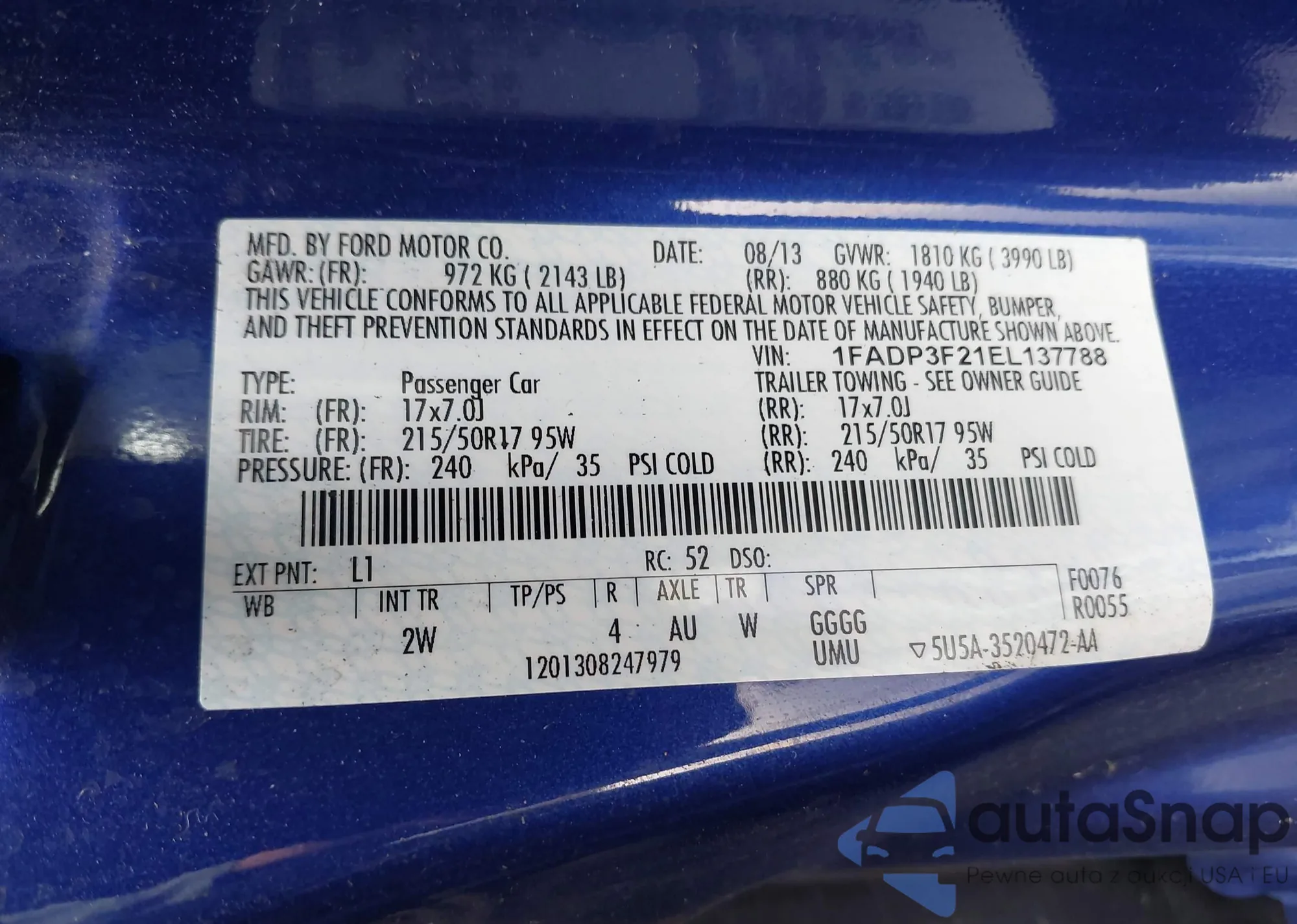 VIN: 1FADP3F21EL137788