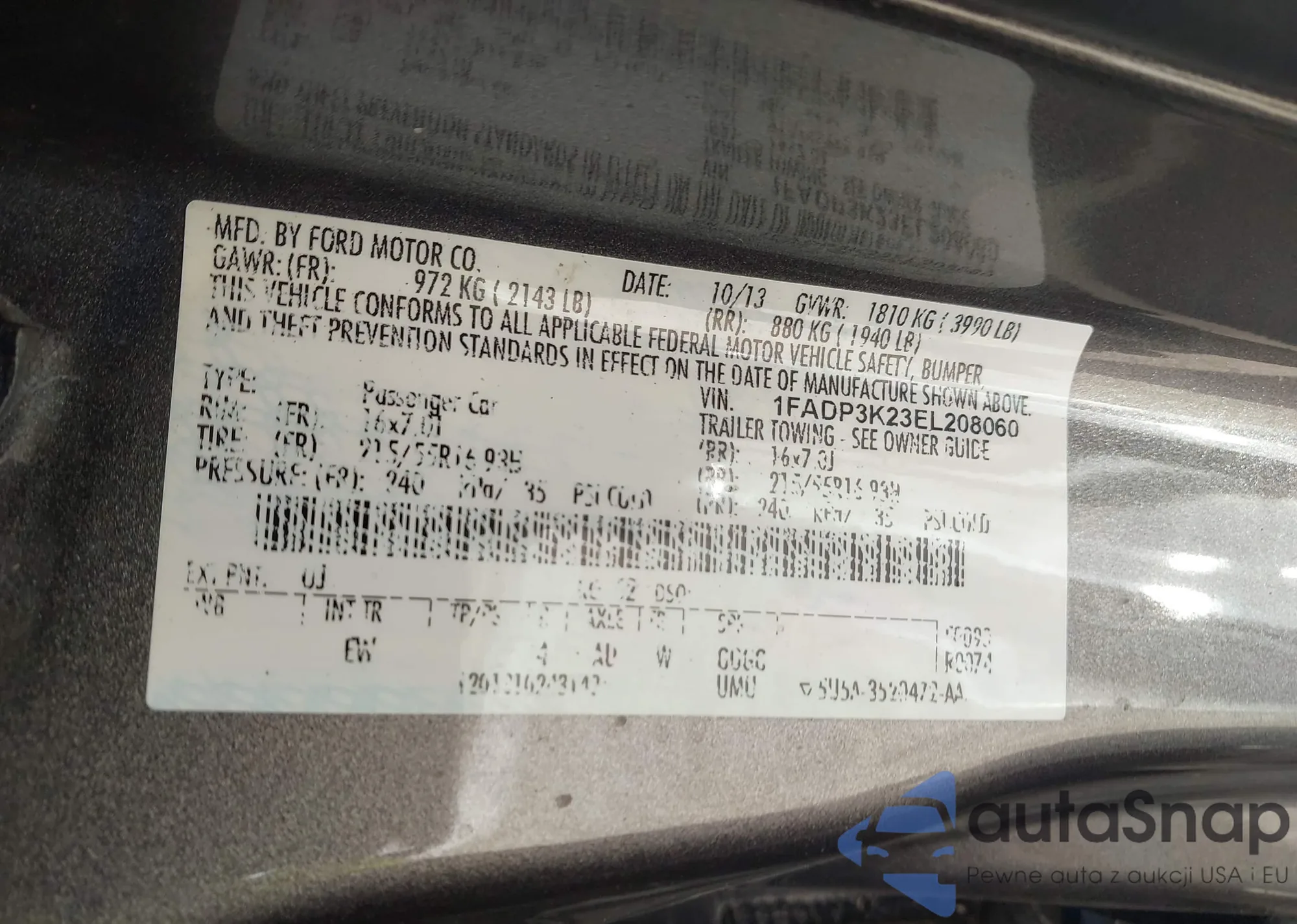 VIN: 1FADP3K23EL208060