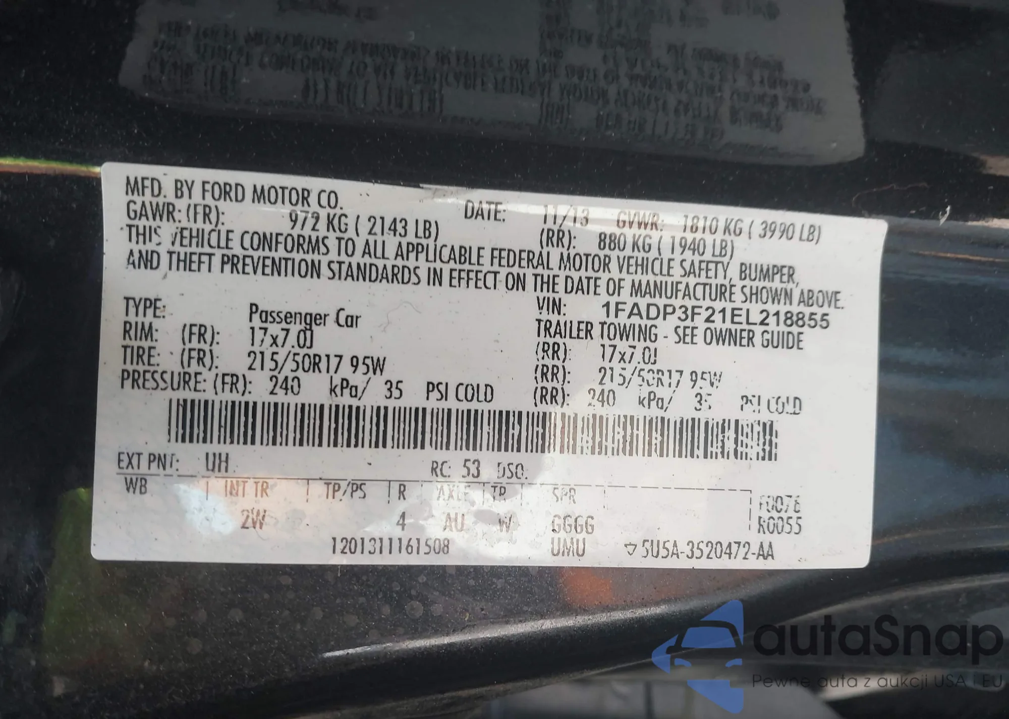VIN: 1FADP3F21EL218855
