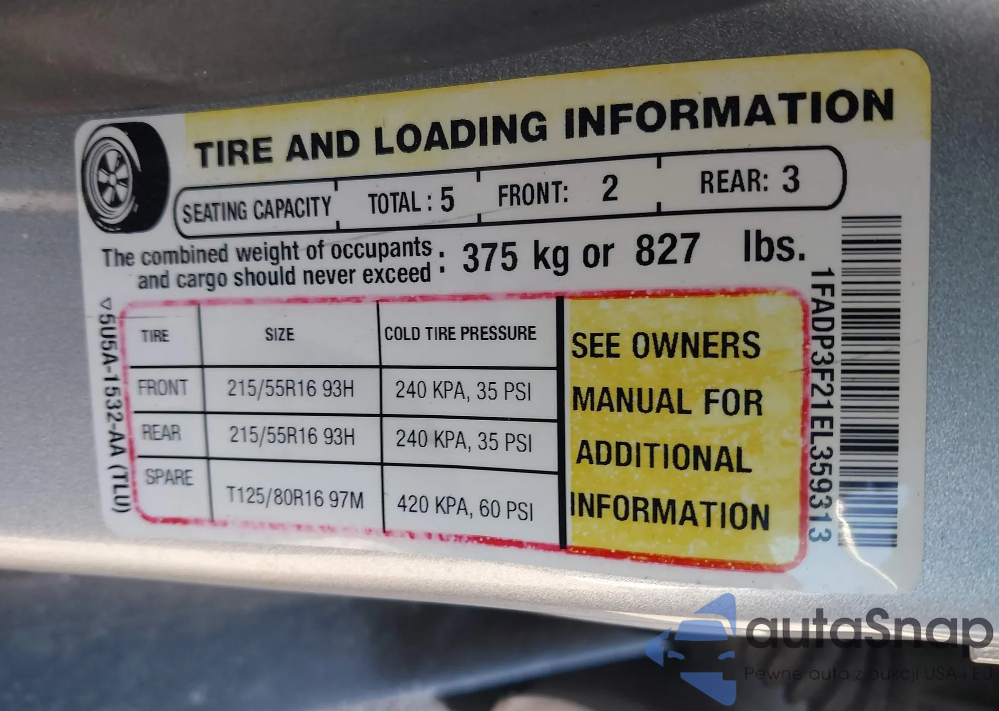 The car Ford Focus 2014 (VIN 1FADP3F21EL359313) has not been auctioned before. The documents are clean, and the mileage matches or is below the market average. Sold by an insurance company – we recommend purchase. Delivery to the port will take approx. 6–8 weeks.
