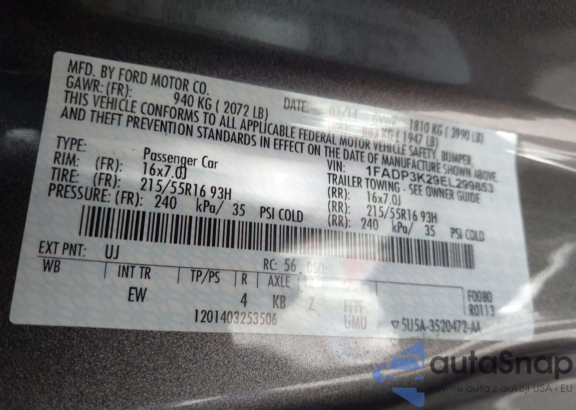 • VIN: 1FADP3K29EL299853