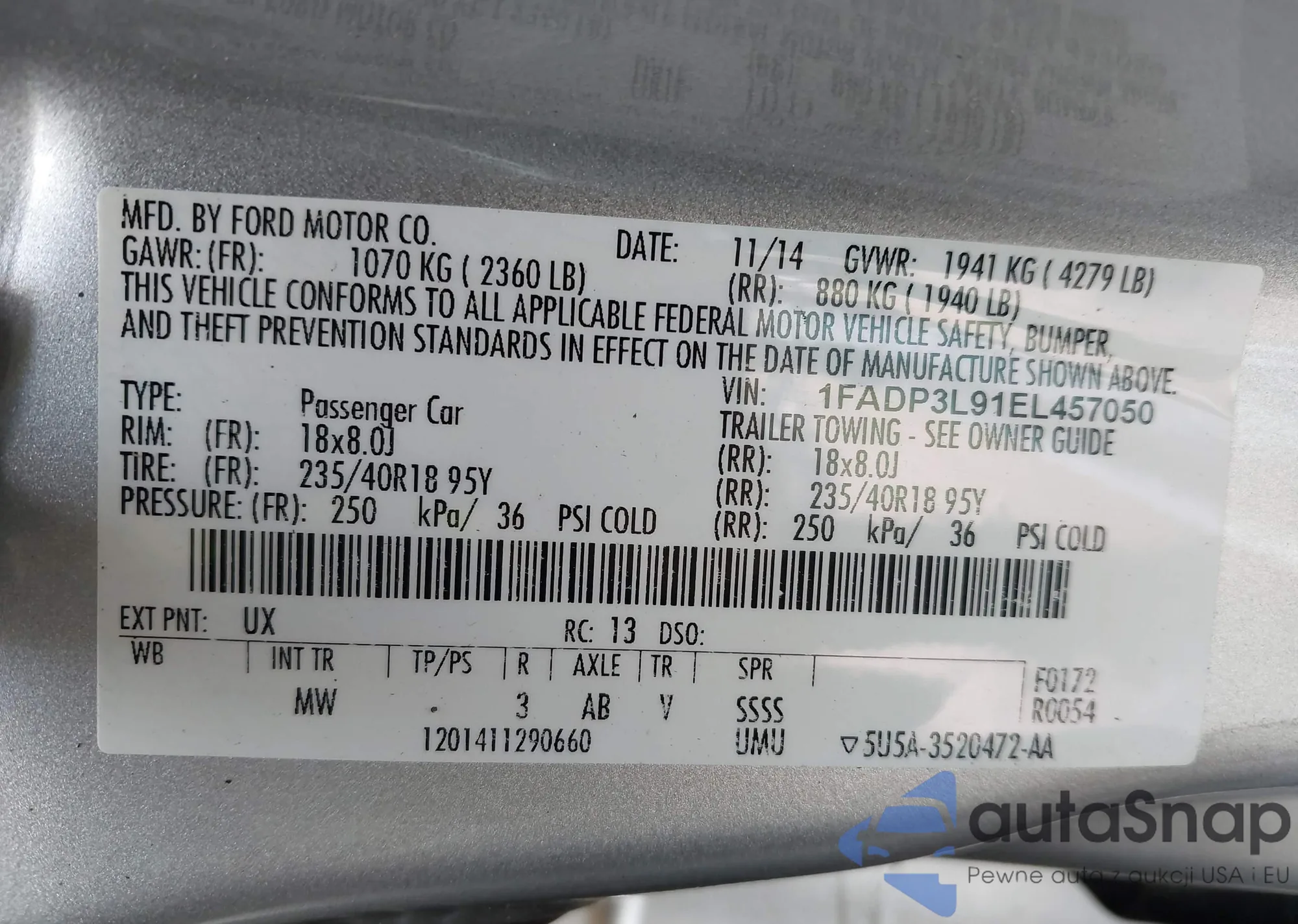 VIN: 1FADP3L91EL457050