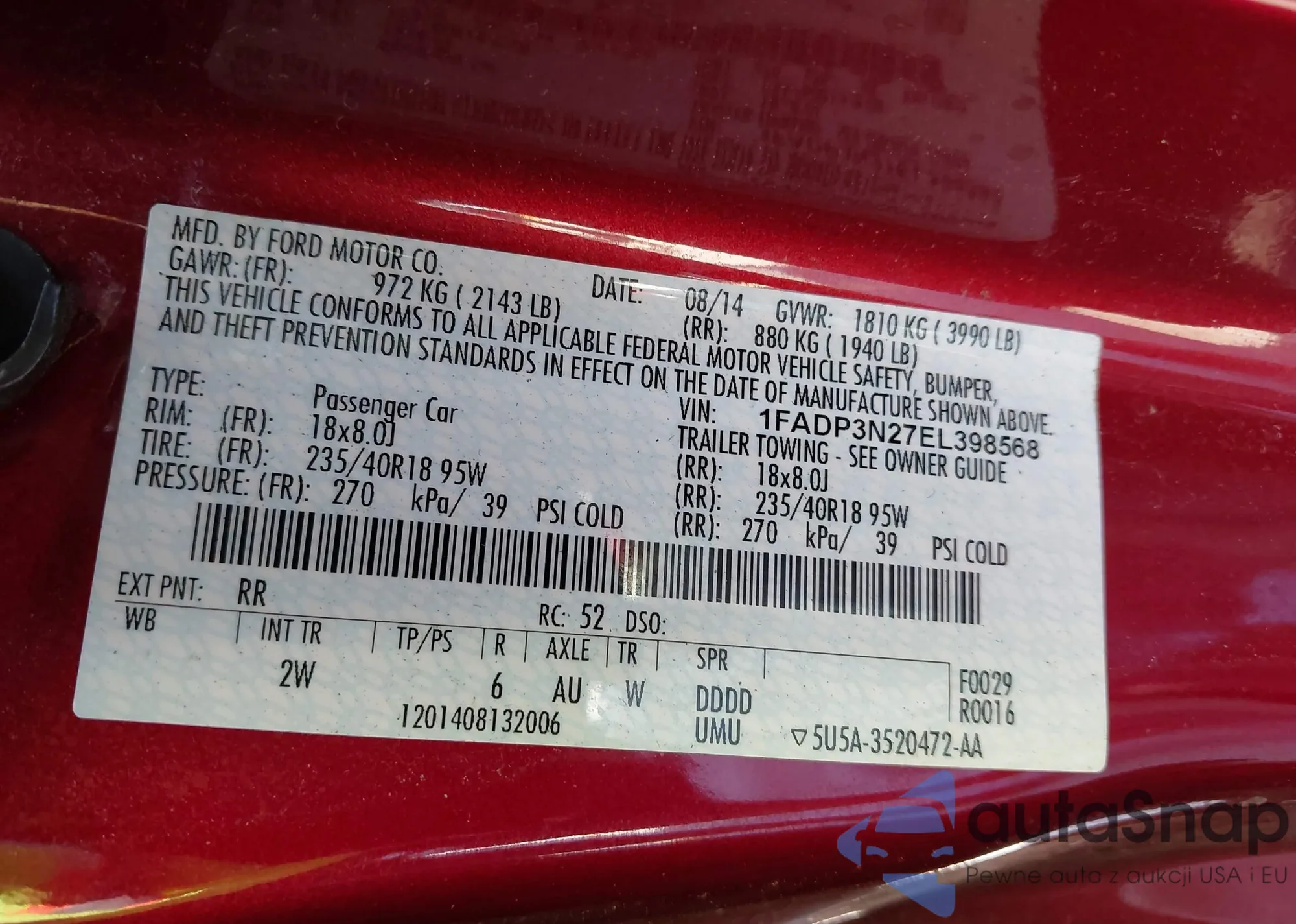 VIN: 1FADP3N27EL398568