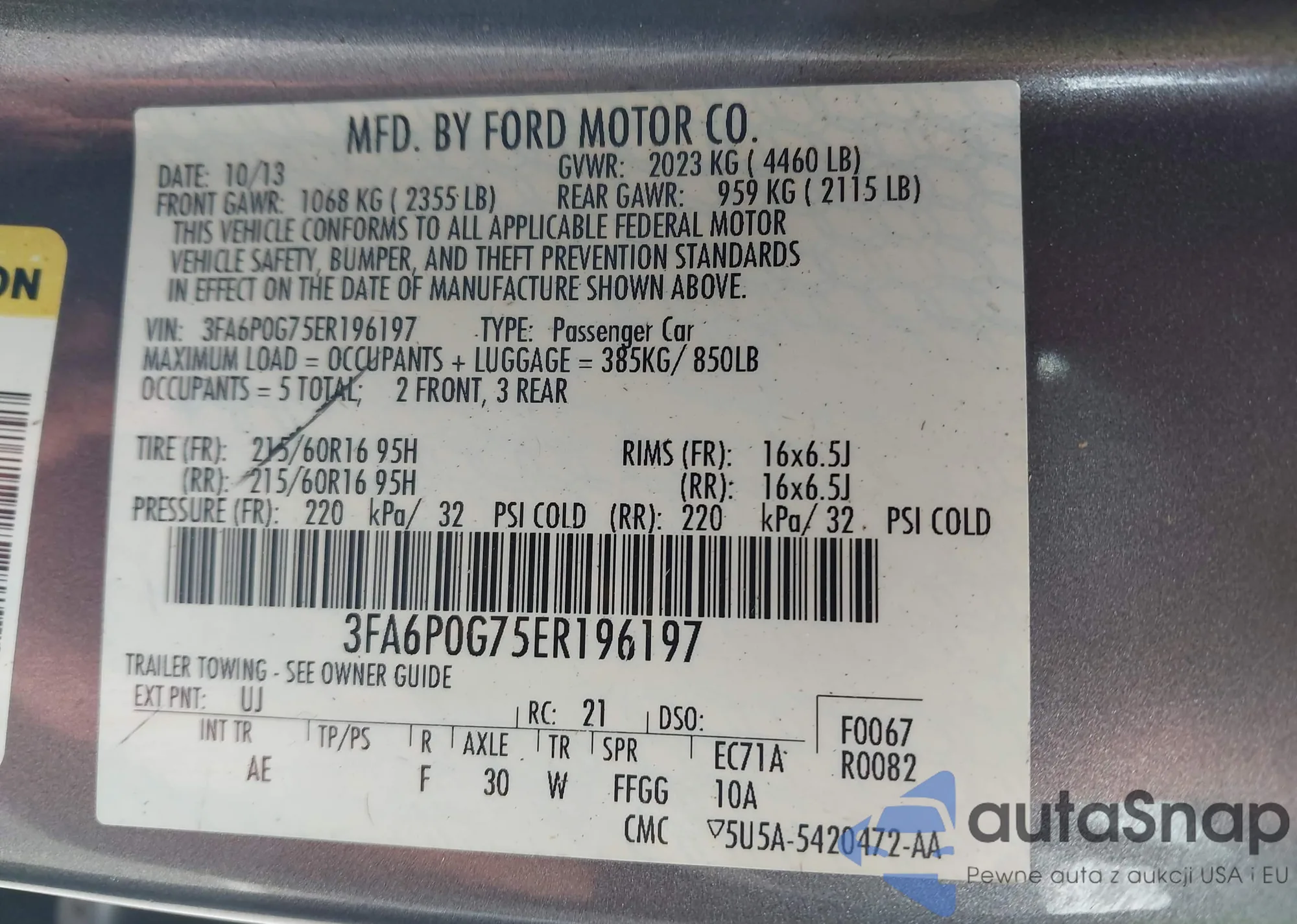 The car Ford Fusion 2014 (VIN 3FA6P0G75ER196197) has not been auctioned before. The documents are clean, and the mileage matches or is below the market average. Sold by an insurance company – we recommend purchase. Delivery to the port will take approx. 6–8 weeks.