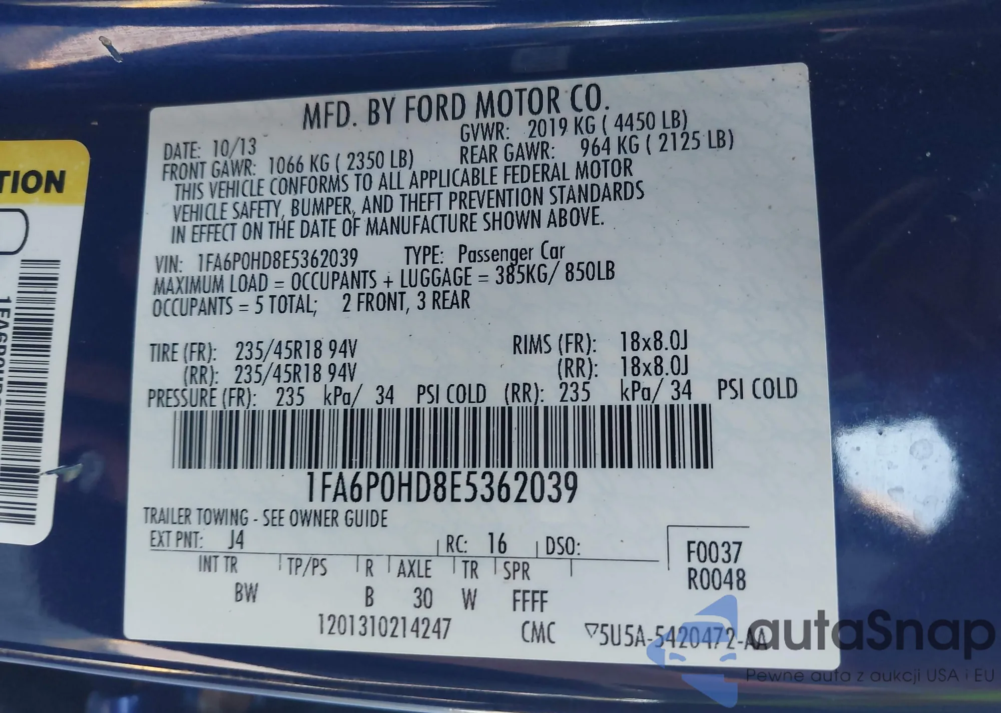 VIN: 1FA6P0HD8E5362039