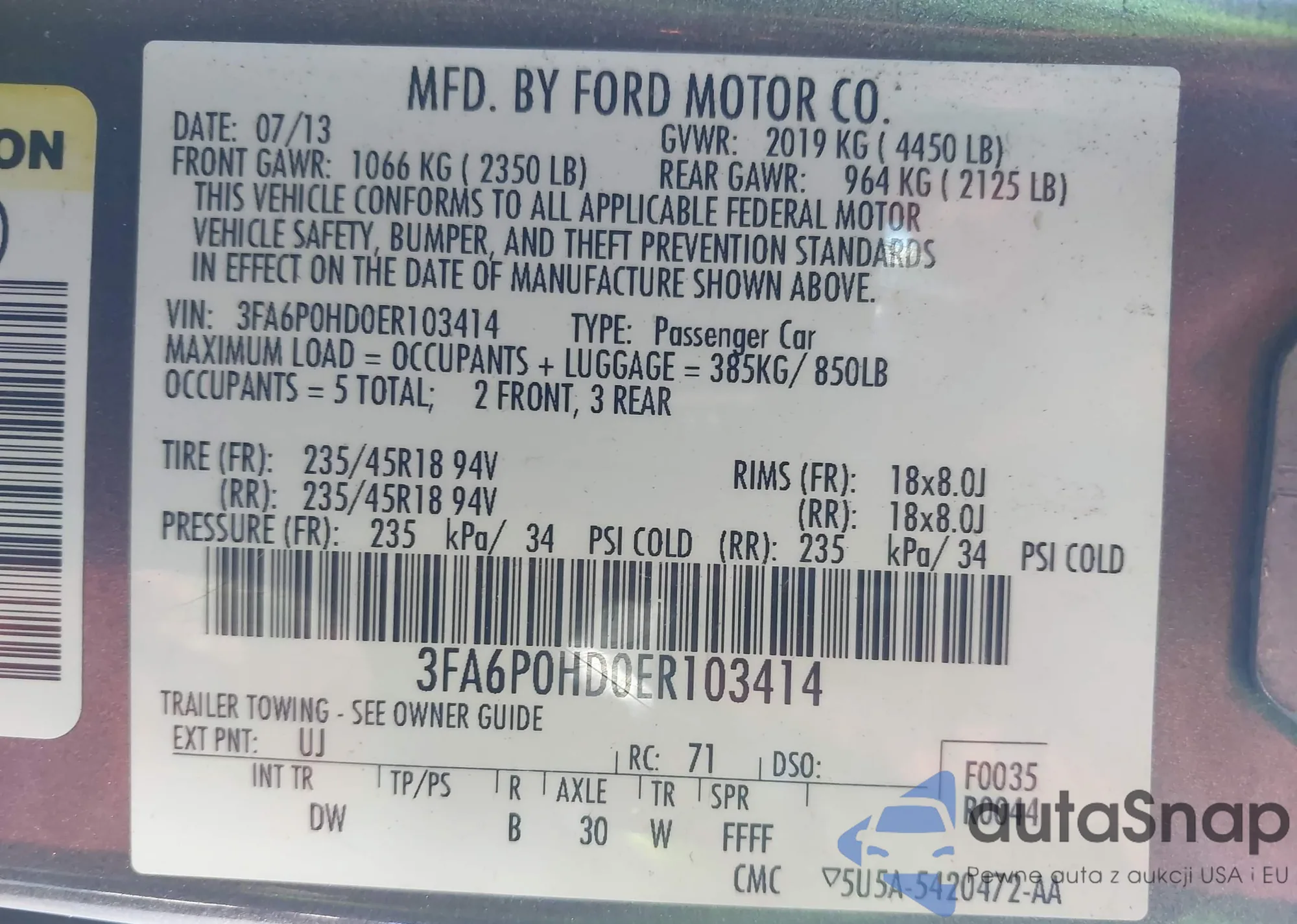 VIN: 3FA6P0HD0ER103414