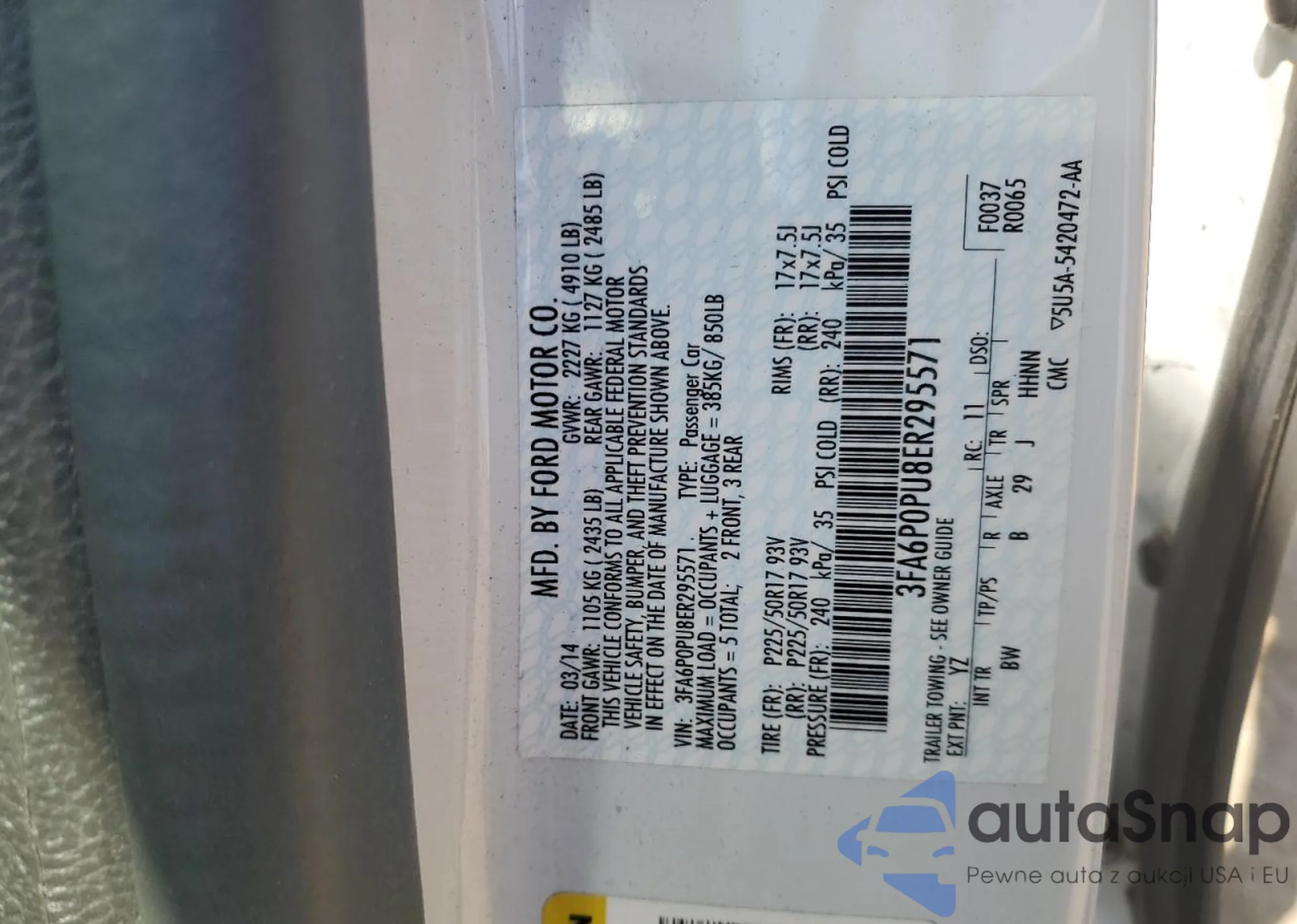 VIN: 3FA6P0PU8ER295571