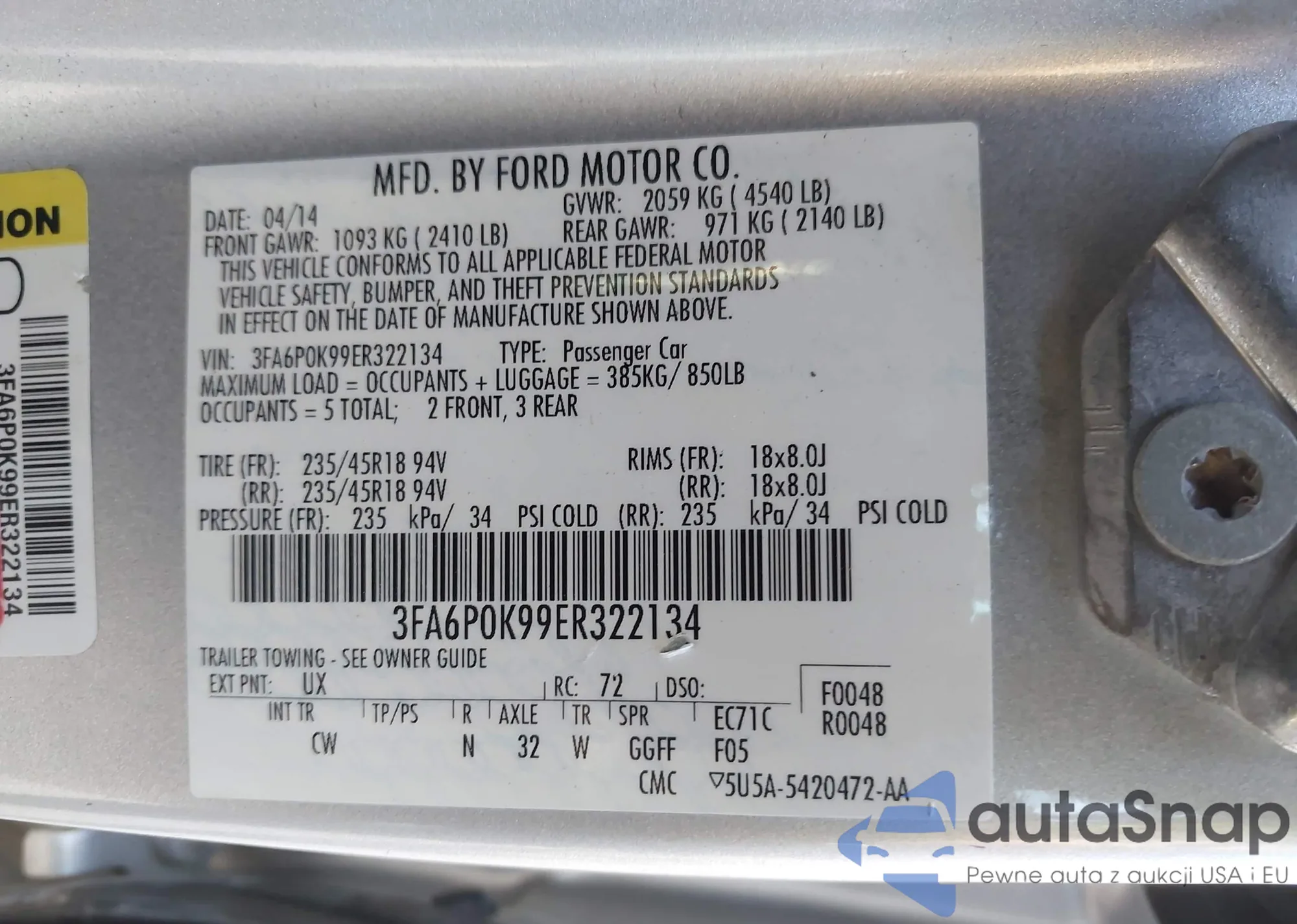 VIN: 3FA6P0K99ER322134