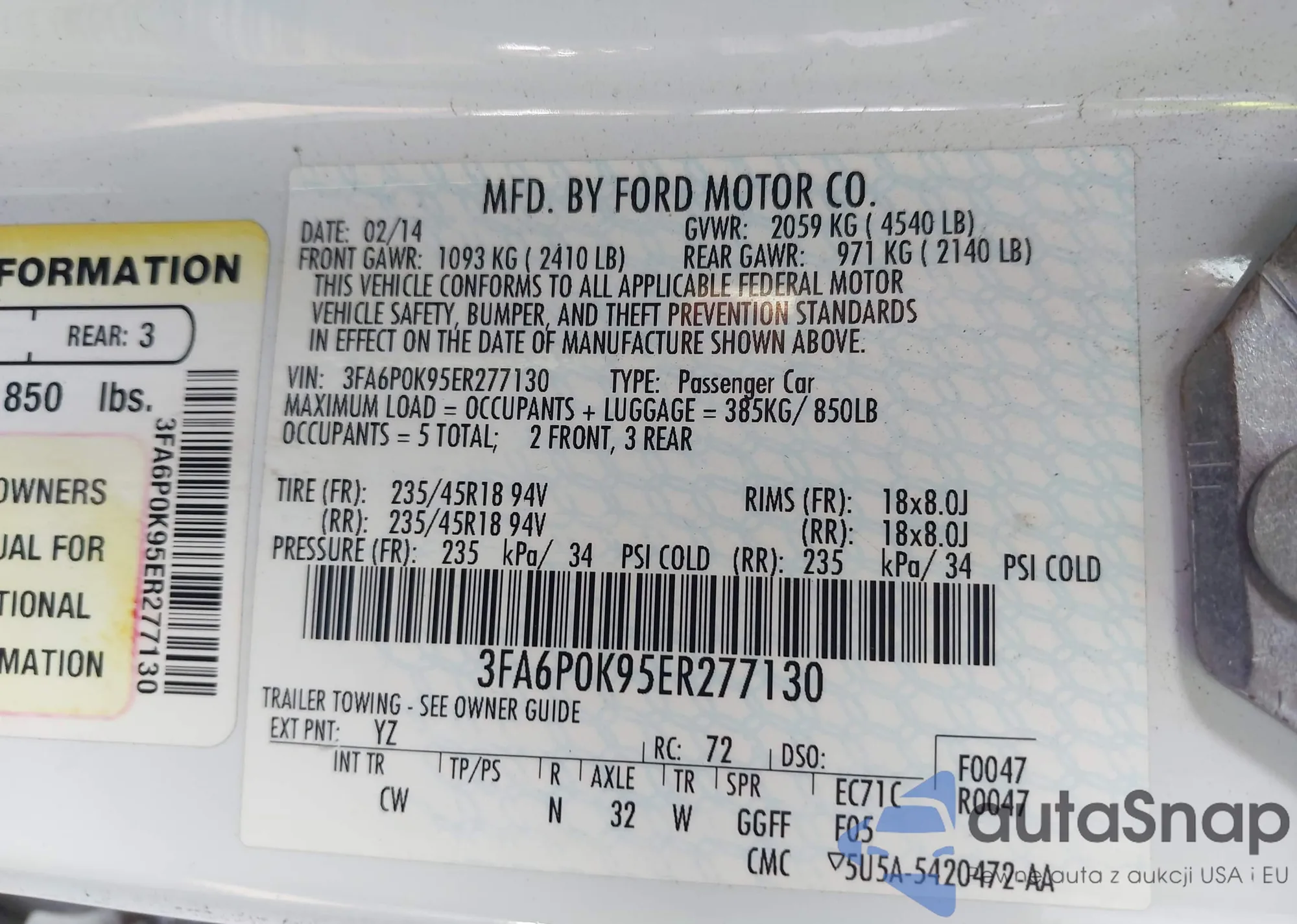 VIN: 3FA6P0K95ER277130