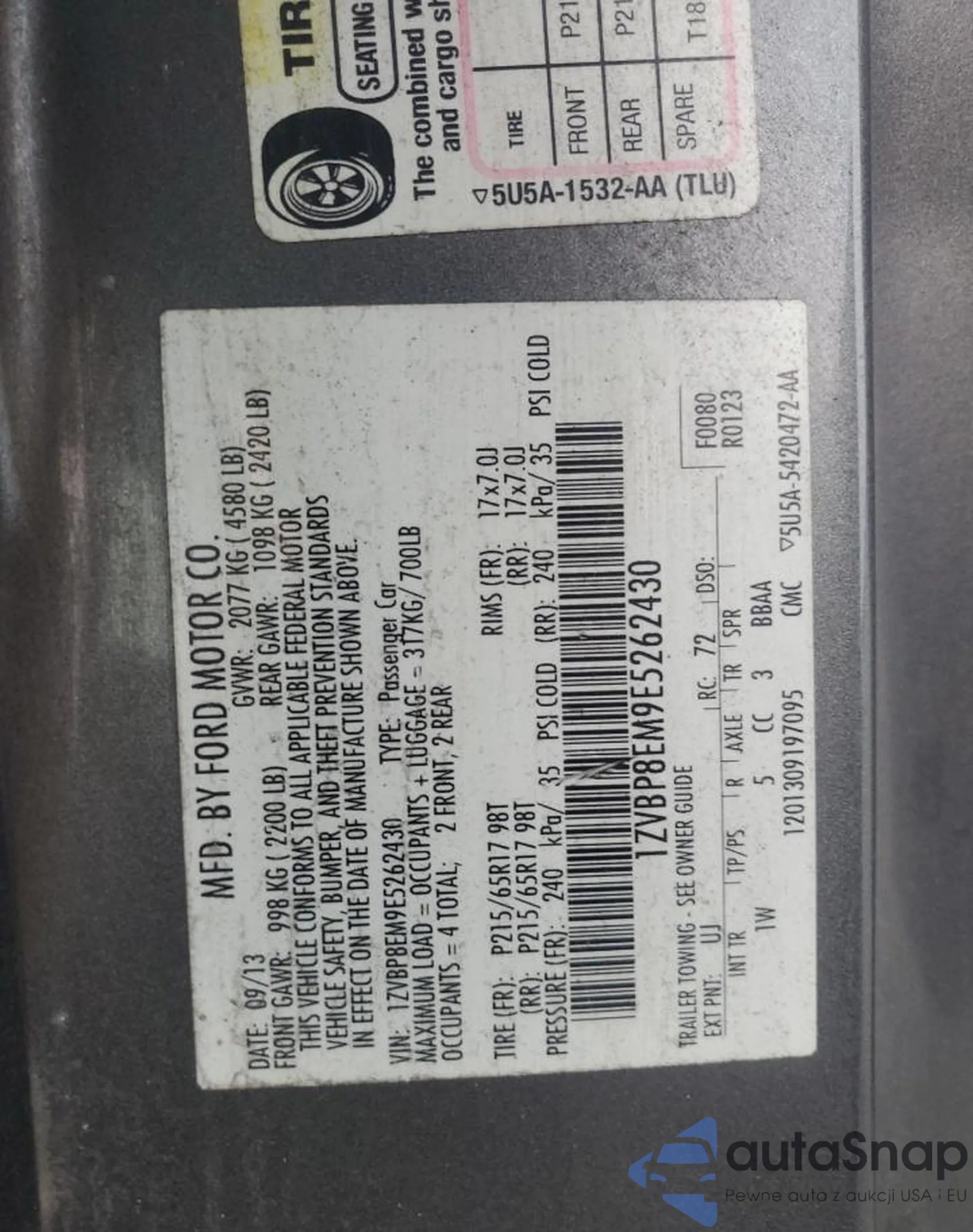 The car Ford Mustang 2014 (VIN 1ZVBP8EM9E5262430) has already been auctioned 0 times or is sold by an unverified seller. We recommend checking the Carfax report and confirming registration possibilities before purchase.