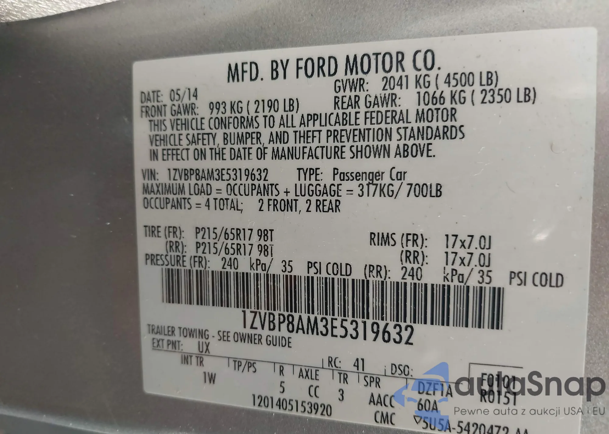 VIN: 1ZVBP8AM3E5319632