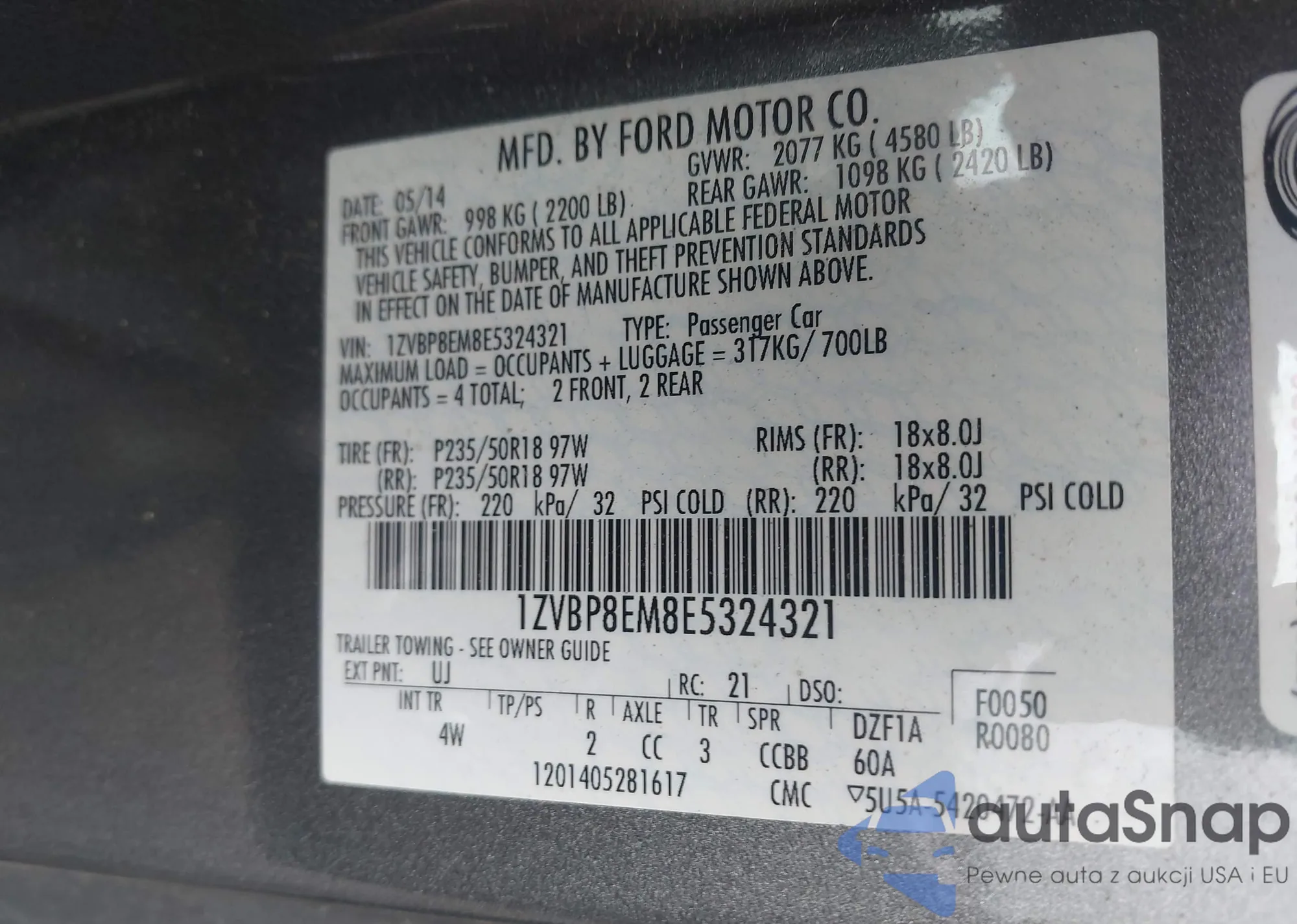 • VIN: 1ZVBP8EM8E5324321