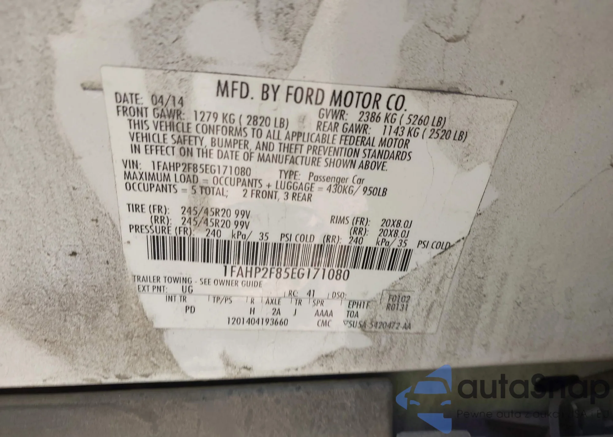 The car Ford Taurus 2014 (VIN 1FAHP2F85EG171080) has not been auctioned before. The documents are clean, and the mileage matches or is below the market average. Sold by an insurance company – we recommend purchase. Delivery to the port will take approx. 6–8 weeks.