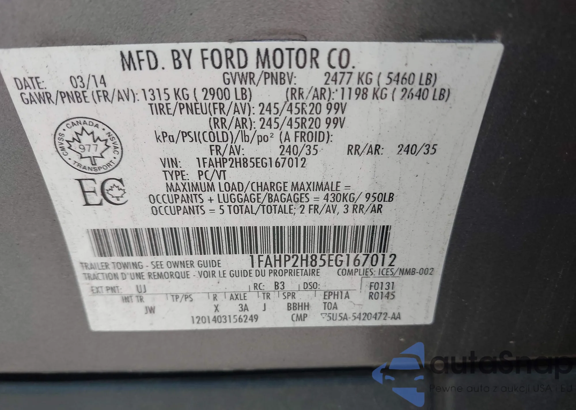 VIN: 1FAHP2H85EG167012