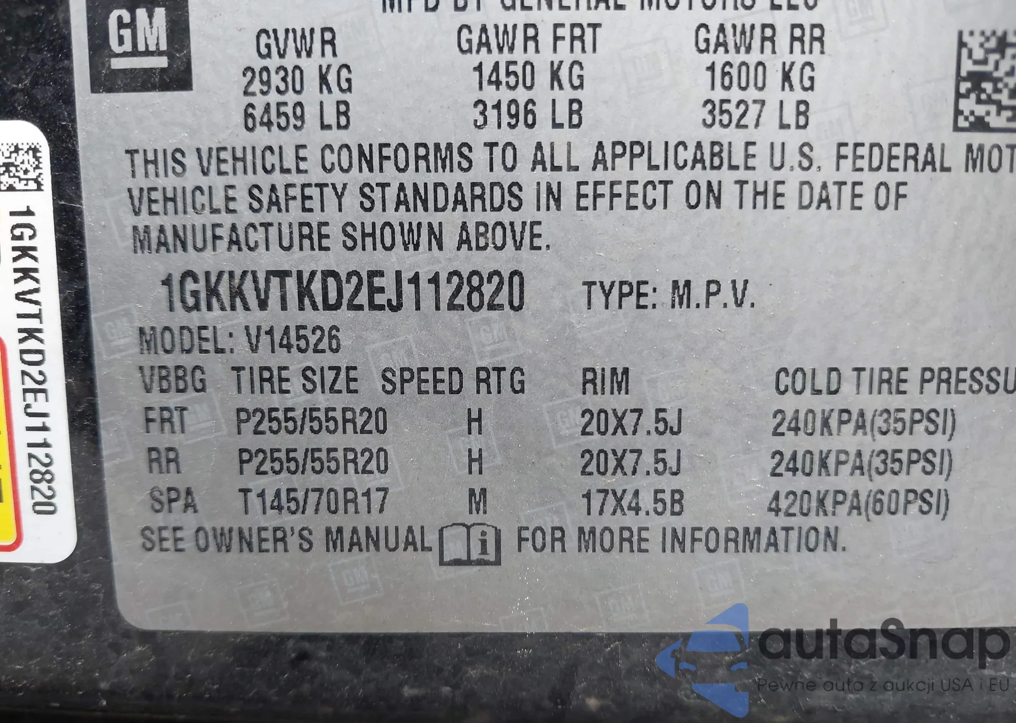 VIN: 1GKKVTKD2EJ112820