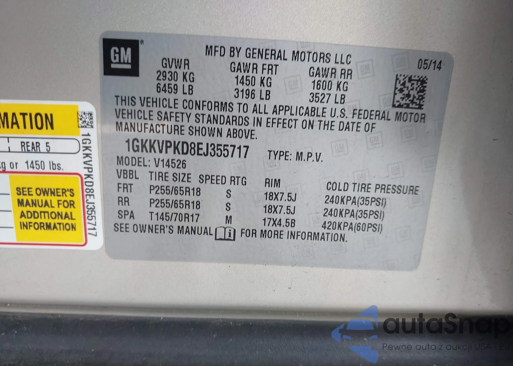 VIN: 1GKKVPKD8EJ355717