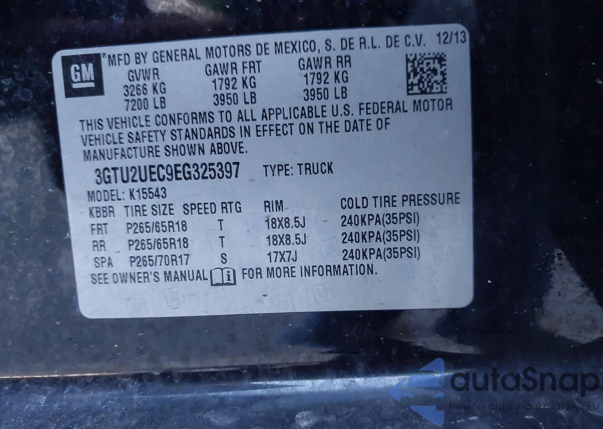 The car GMC Sierra 2014 (VIN 3GTU2UEC9EG325397) has not been auctioned before. The documents are clean, and the mileage matches or is below the market average. Sold by an insurance company – we recommend purchase. Delivery to the port will take approx. 6–8 weeks.