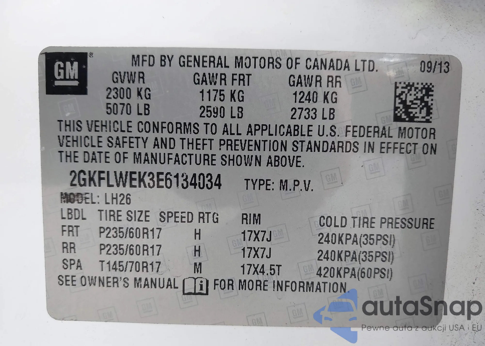 VIN: 2GKFLWEK3E6134034