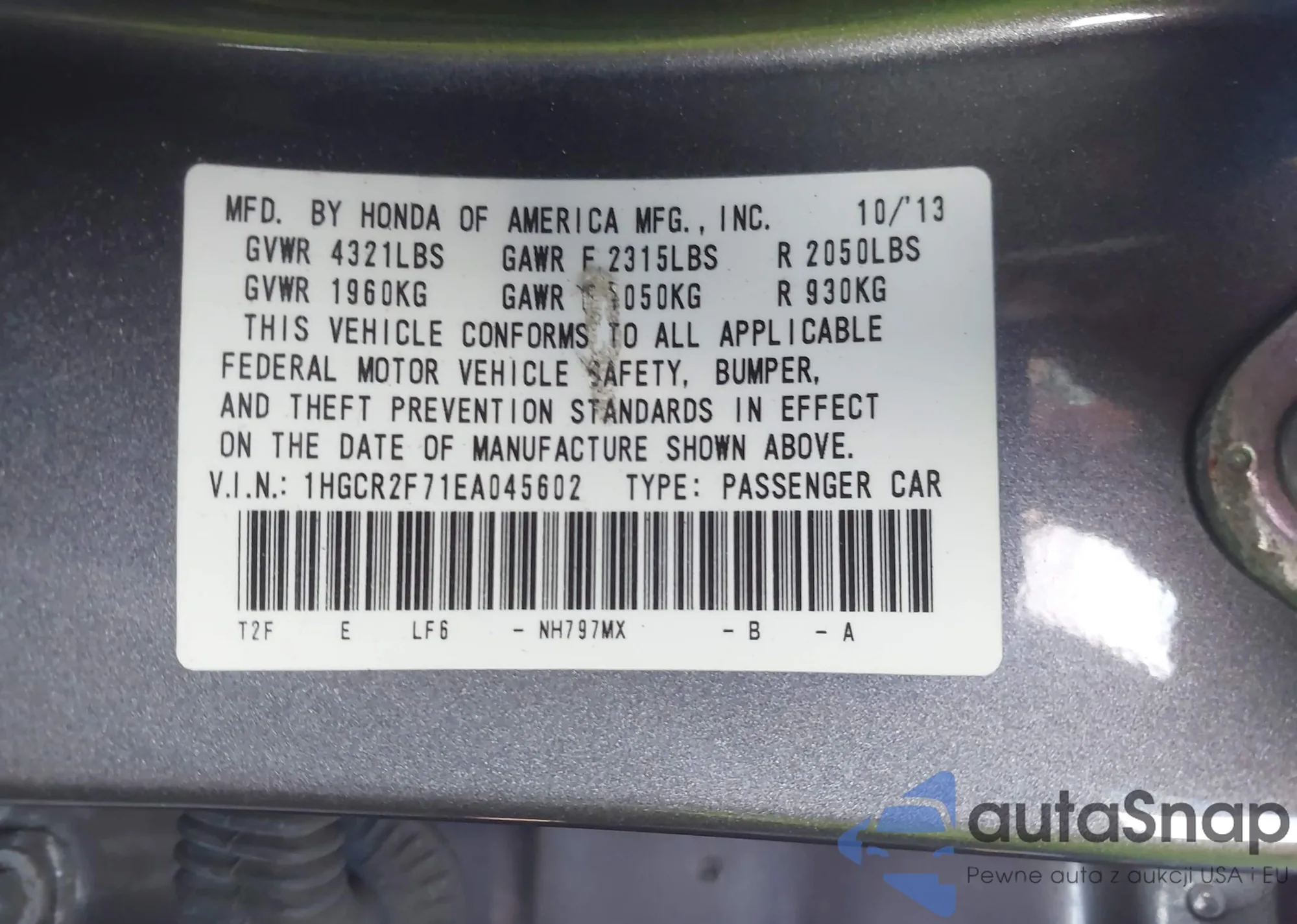 VIN: 1HGCR2F71EA045602