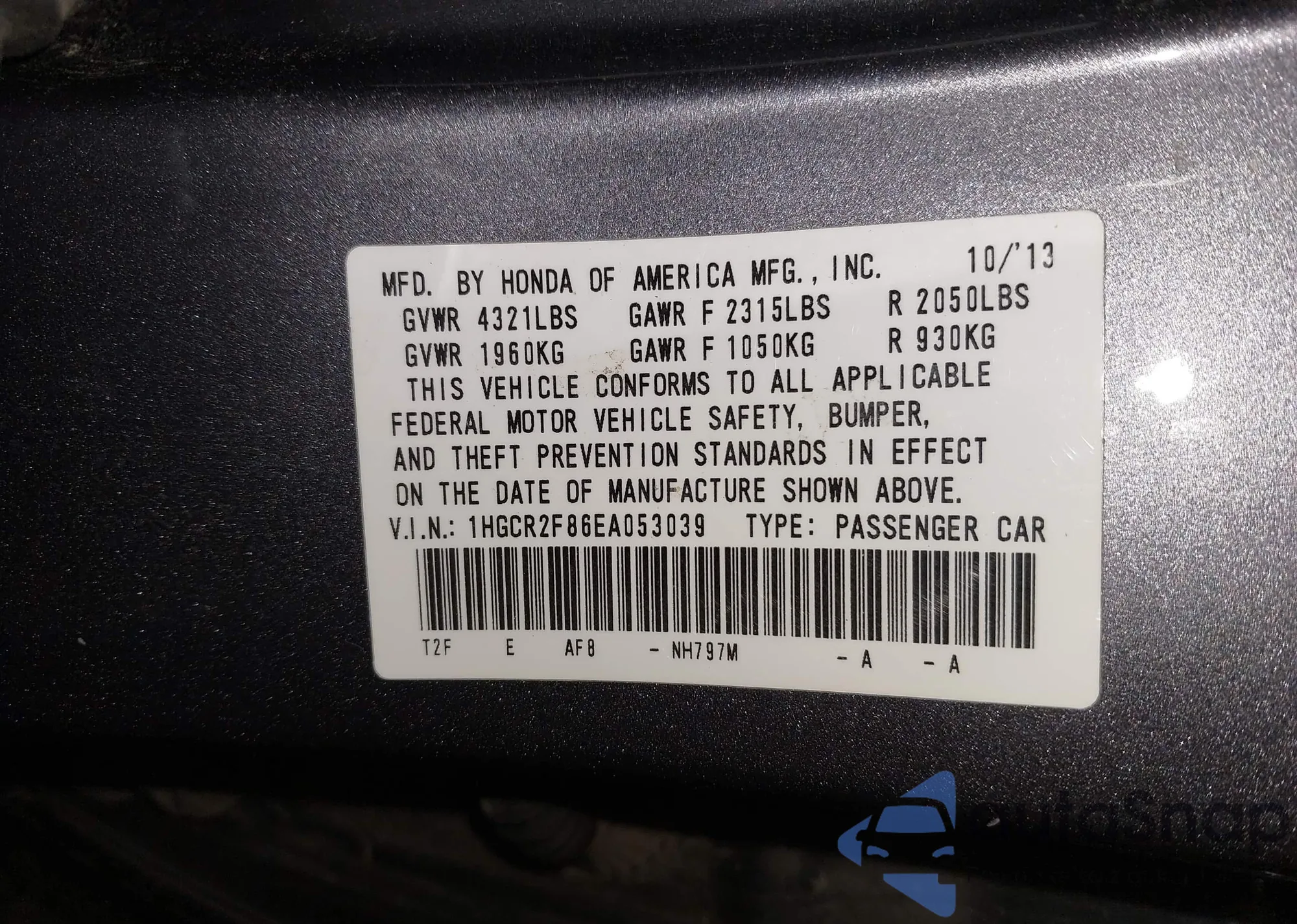 VIN: 1HGCR2F86EA053039