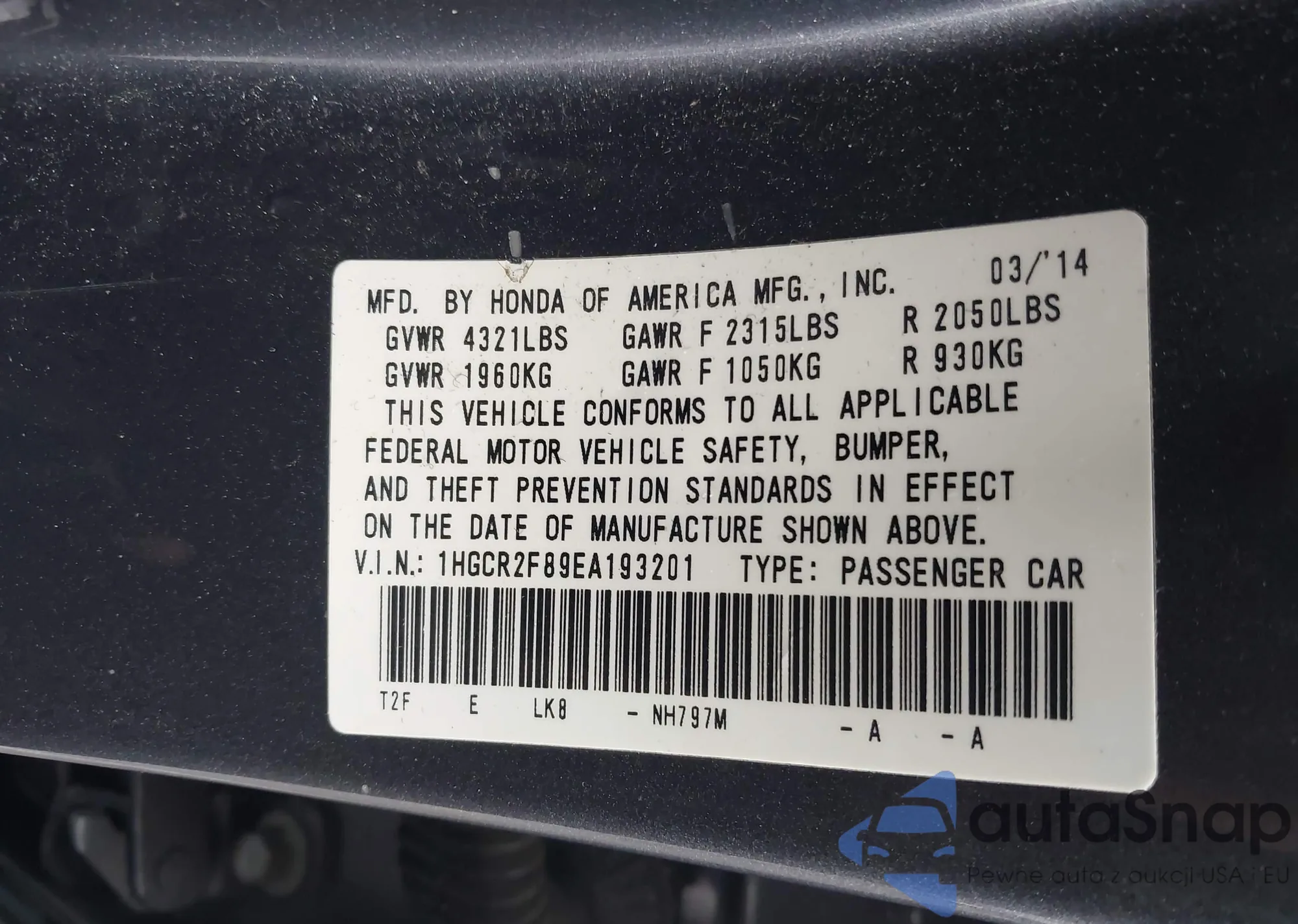 VIN: 1HGCR2F89EA193201