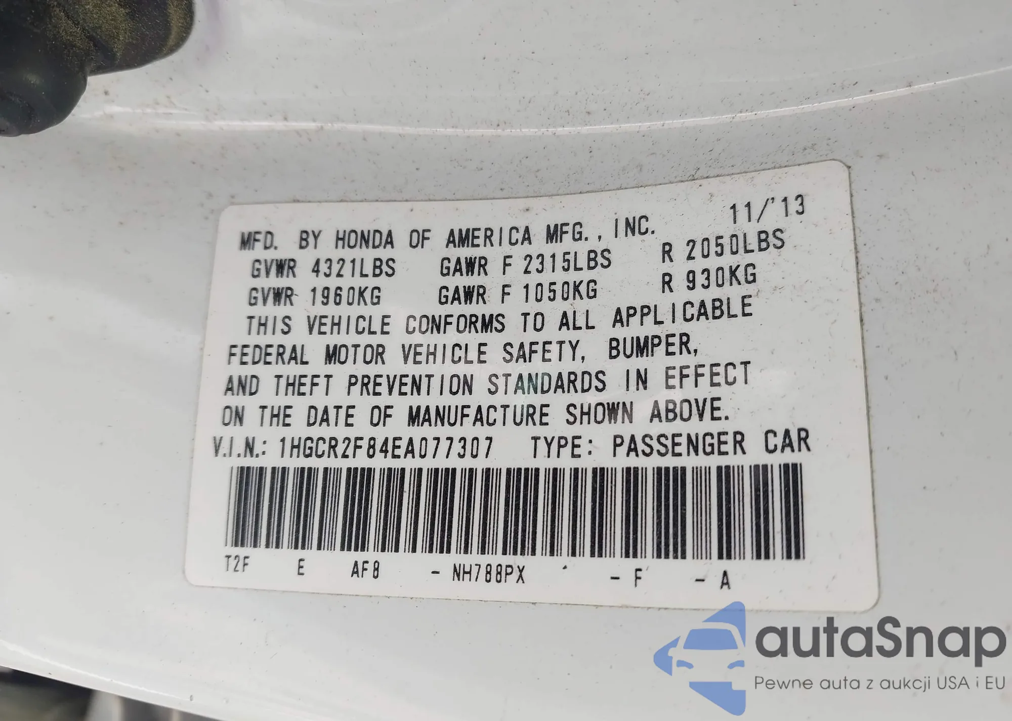 VIN: 1HGCR2F84EA077307