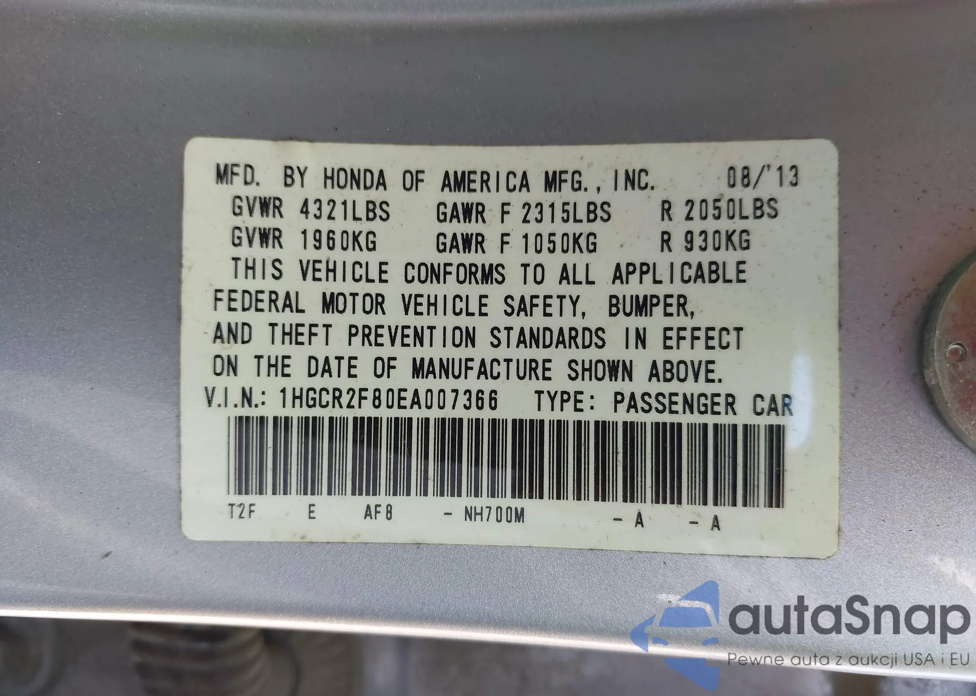 VIN: 1HGCR2F80EA007366