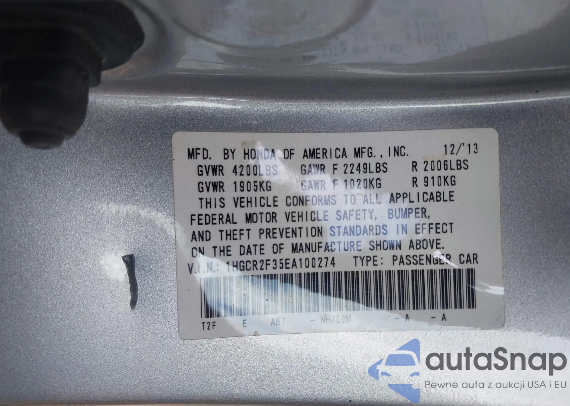 VIN: 1HGCR2F35EA100274