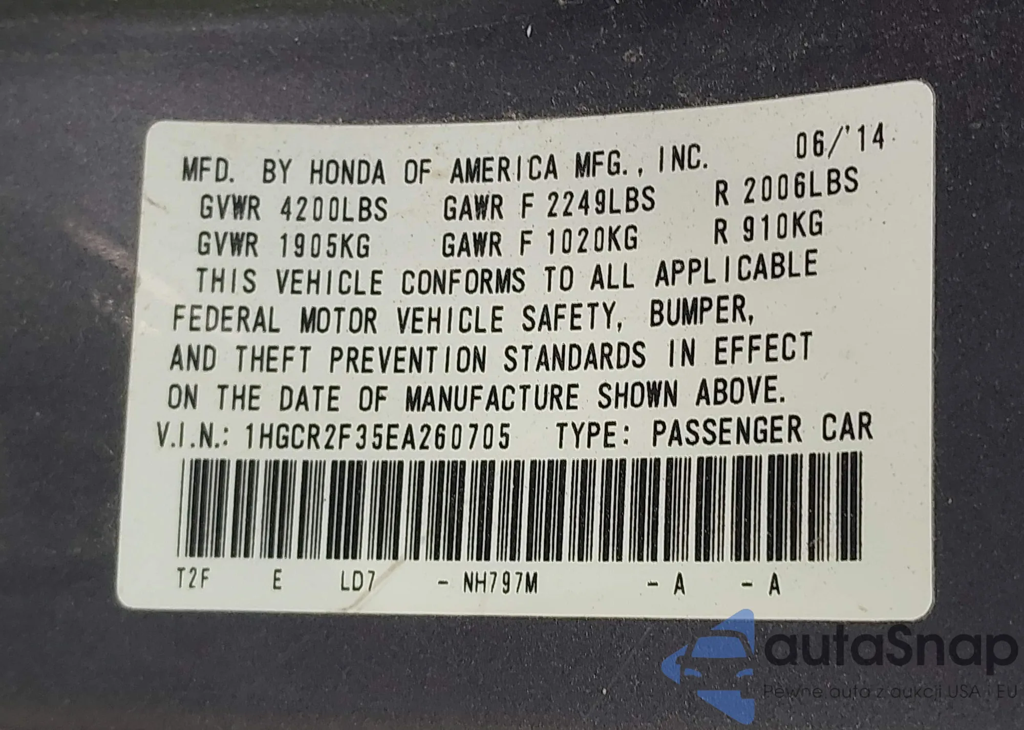 VIN: 1HGCR2F35EA260705
