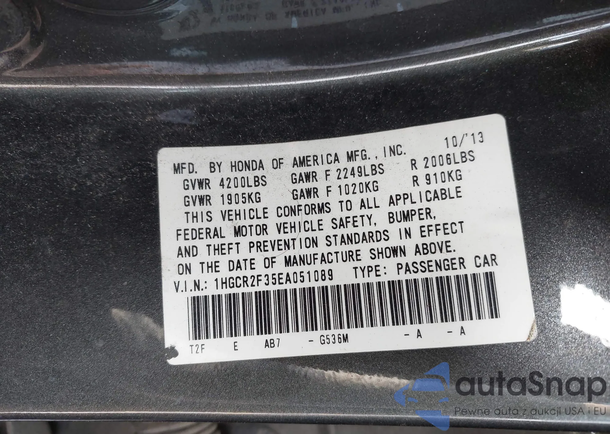 VIN: 1HGCR2F35EA051089