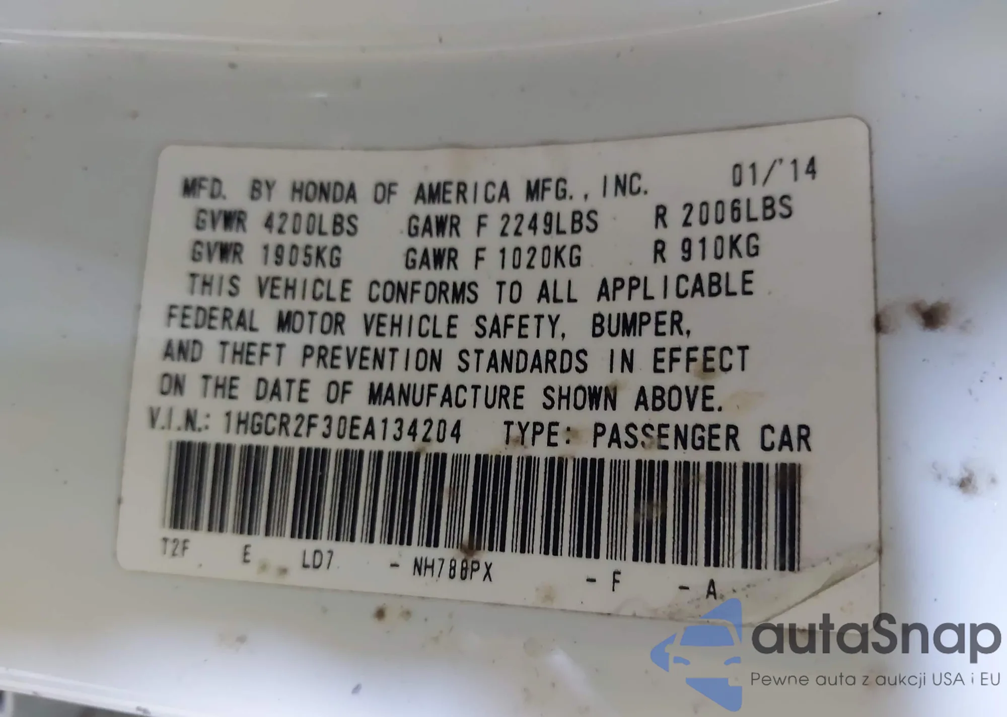 VIN: 1HGCR2F30EA134204